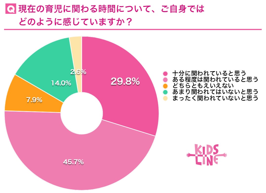 「育児に関わる時間について、ご自身ではどのように感じているか」の回答結果は以下の通りです。