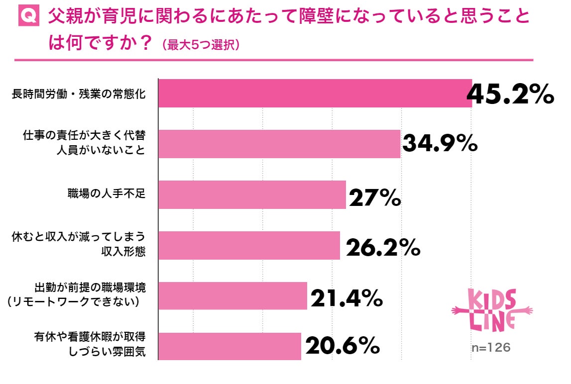 父親の育児への障壁、最も多かったのは「長時間労働・残業の常態化」が45.2%