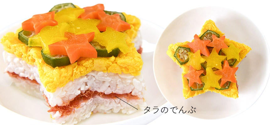 今回「七夕デリ」としてご用意したのは、レアチーズ生地にマンゴーゼリーをのせて夏らしくさっぱりと仕上げた「七夕ケーキ」と、星形のカラフル野菜を散りばめた華やかな「星空ちらし」の2種で、いずれも季節限定&数量限定品です。厳選した素材を使いひとつひとつ手作りで、見た目だけでなくおいしさにもこだわりました。