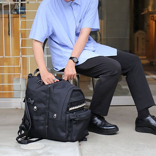 そんな現代のモノづくりの環境や、それに携わる方たちへのリスペクト、そして想いが報われていない可能性があることへのアンチテーゼを込め、一般的にバッグに必要とされる機能以上に盛り沢山な要素を“足し算”した、スクエアタイプとデイパックタイプの2型を製作しました。