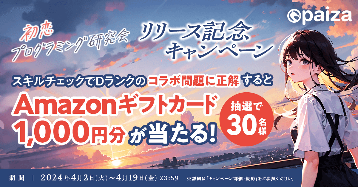ITエンジニア向け国内最大の転職・就職・学習プラットフォーム「paiza(パイザ)」を運営するpaiza株式会社(東京都港区、代表取締役社長/CEO 片山良平)は、楽しみながらプログラミングに触れるプログラミングエンタメの新作ゲーム『初恋プログラミング研究会 ~海に行こうよ~』を本日より無料公開いたします。