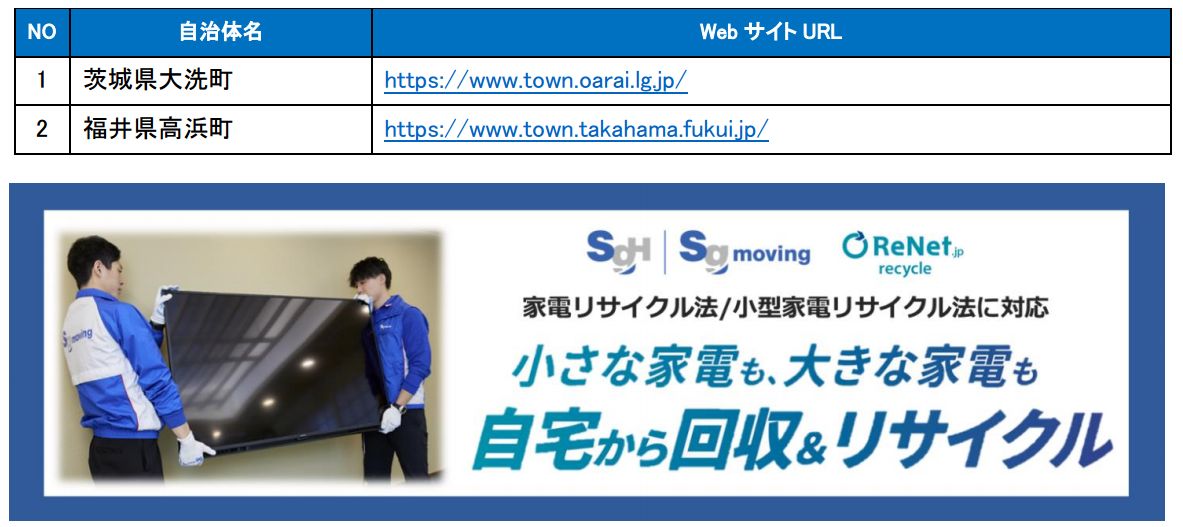 リネットジャパンとSGムービング 新たに2自治体と協定を締結自治体公認の「大型家電の便利な回収サービス」は117自治体に拡大