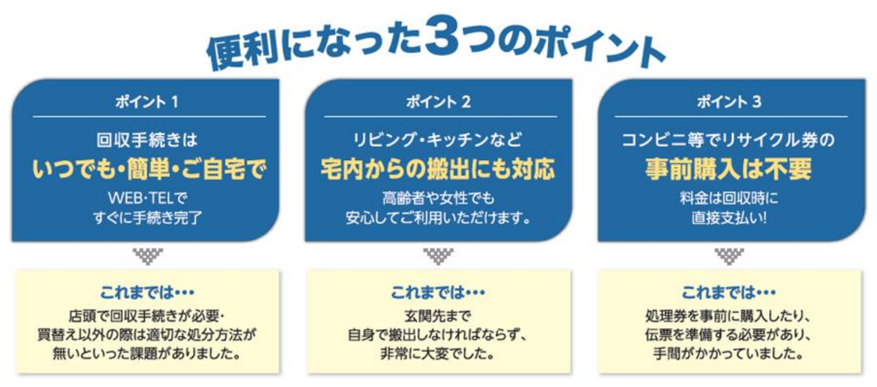 ~ 手続きは簡単・家の中からの搬出にも対応・法律に基づいて正しくリサイクル ~