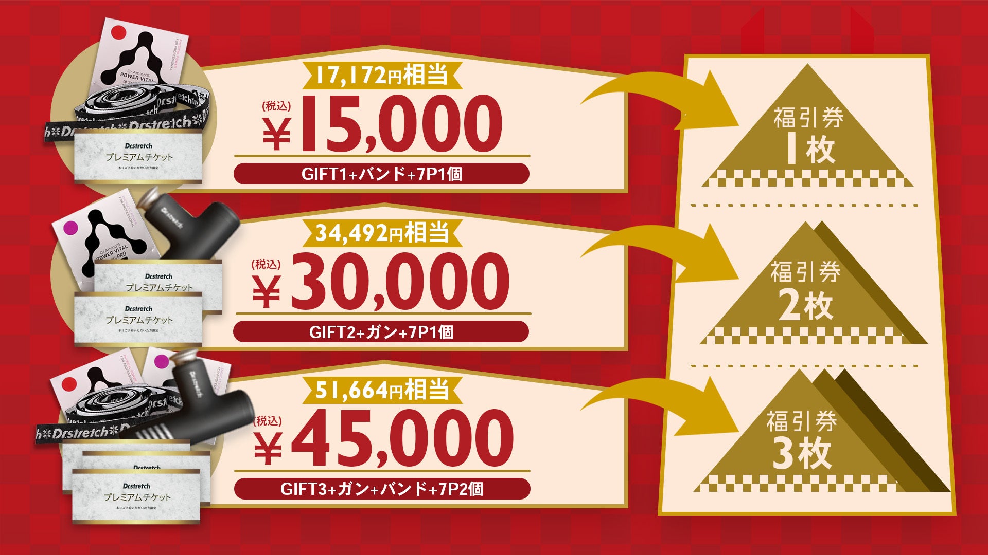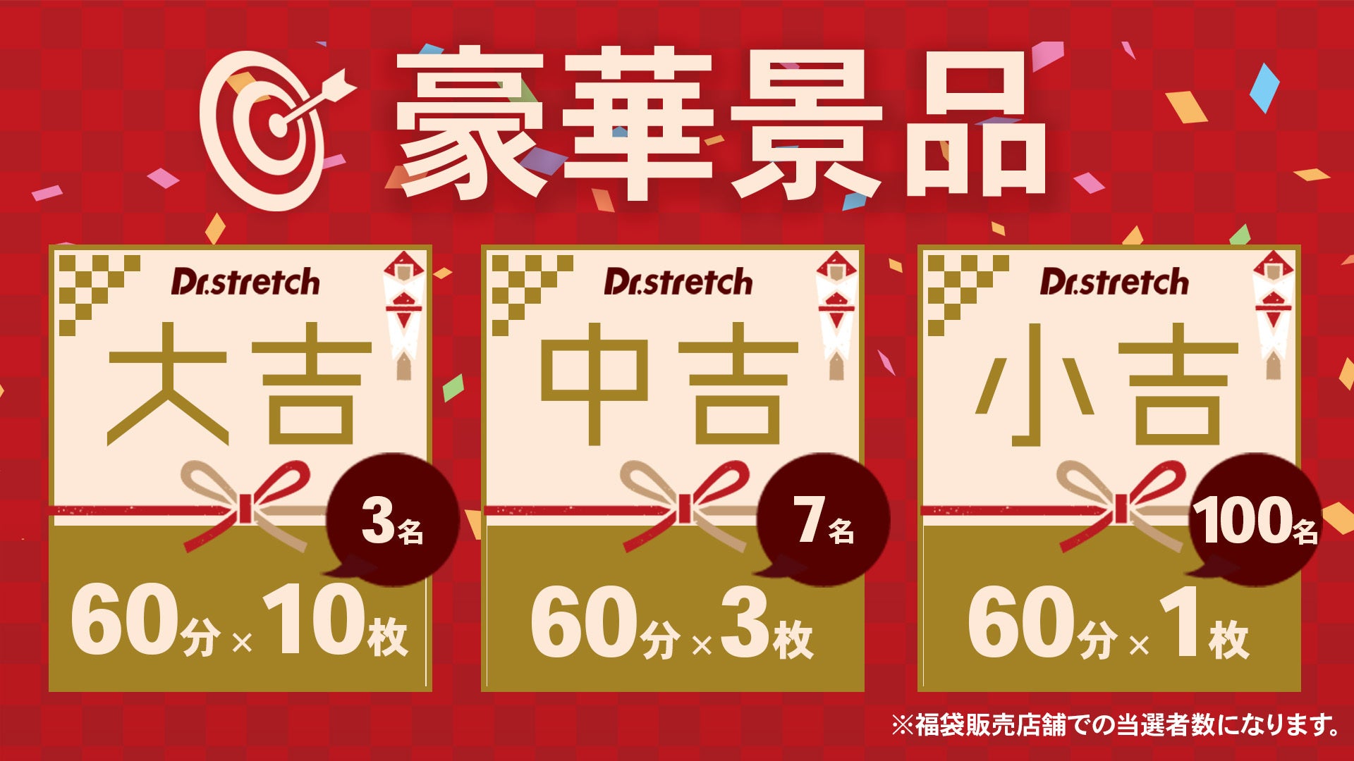 また、福袋をご購入いただいた方を対象に、豪華景品がその場で当たる福引を実施致します。Dr.stretchが提供するストレッチサービスを定期的に受けていただくことで、体の不調改善はもちろん健康的な運動習慣の継続化をサポート致します。