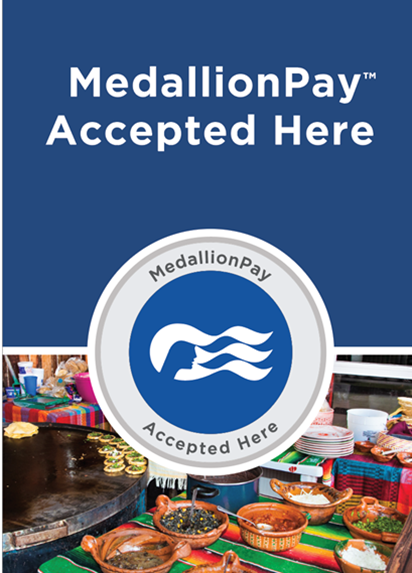 メダリオン・ペイは現在、セント・トーマス島、カボ・サン・ルーカス、コスメル、プエルト・バジャルタで利用可能で、今後はアラスカクルーズの全寄港地への拡充を含め、さらに多くの都市と加盟店の追加を予定しています。また、ダイヤモンド・インターナショナル(Diamonds International)とカリロハ(Cariloha)のほか、レストラン、バー、土産物店、宝石店から博物館、観光ツアーオペレーターまで、現在65以上の加盟店でご利用いただけます。メダリオン・ペイは、規模の大小を問わず、すべての小売業者が利用できるほか、加盟店登録の初期費用や月額費は不要で、長期契約の必要がなく、ソフトウェアの使用料も無料です。加盟店は、すべてのクレジットカード処理手数料を含む取引手数料の支払いのみで、いつでもサービスをキャンセルすることができます。