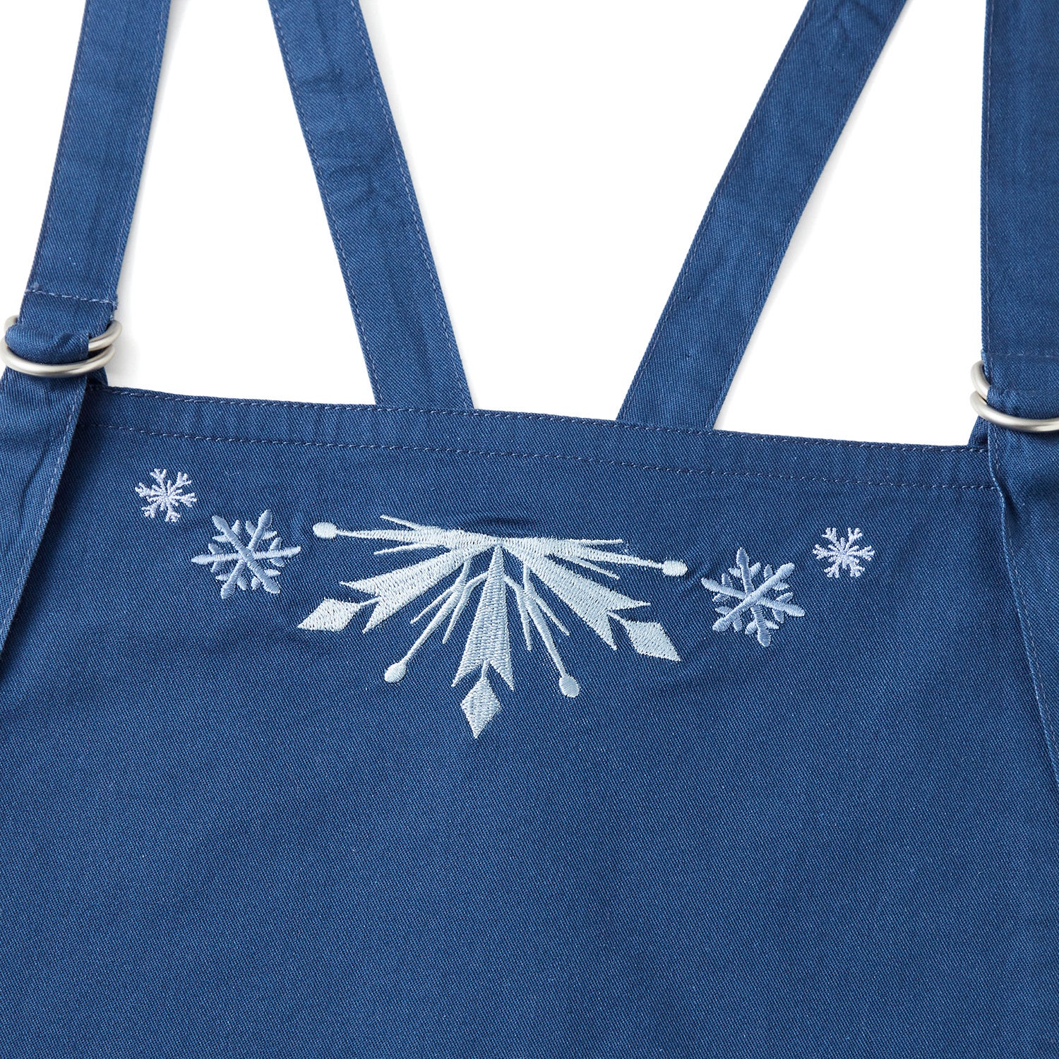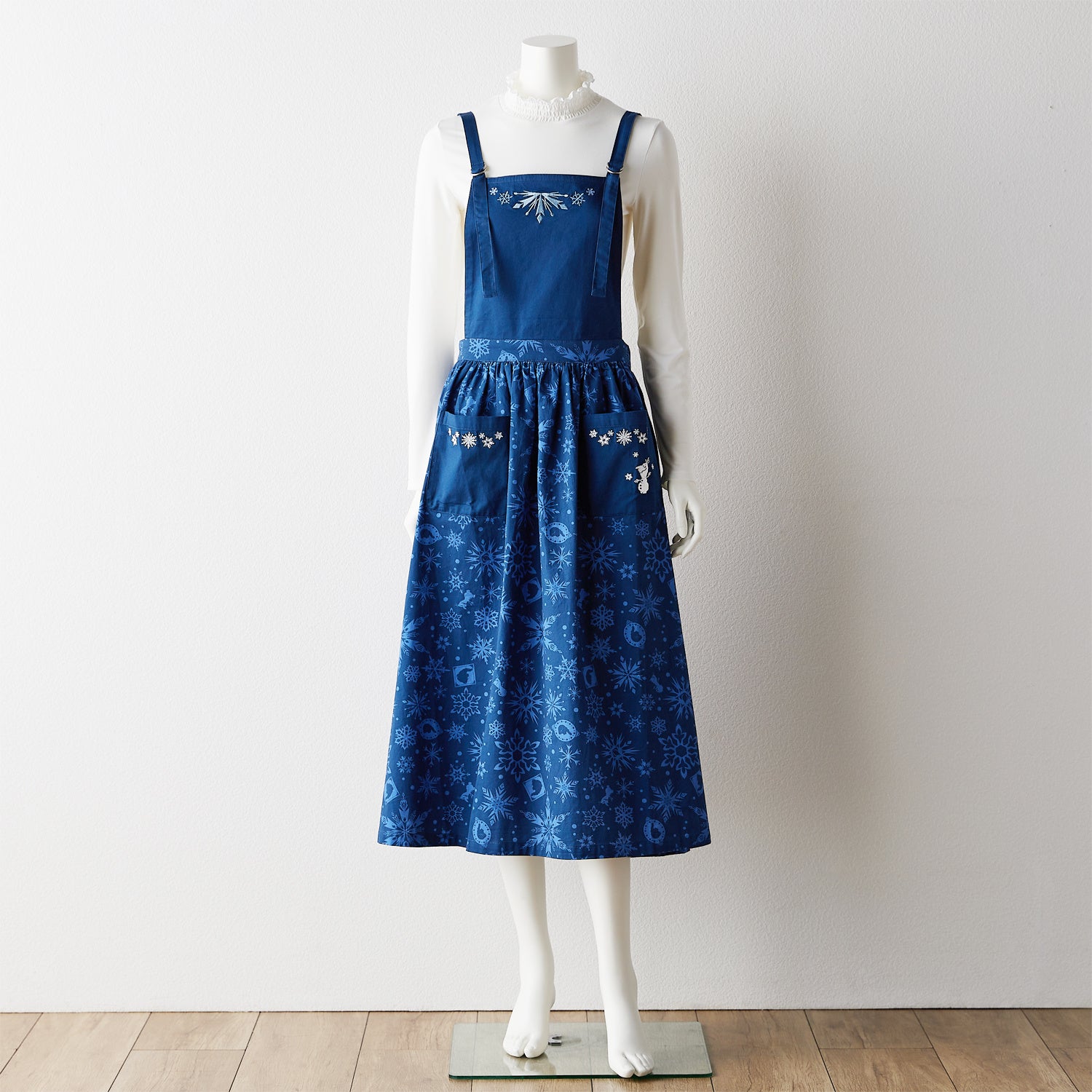 「テーブルクロス」はそれぞれの物語の世界がプリントで描かれるデザインで、『アナと雪の女王』柄はブルーを基調として雪の結晶やオラフなどのモチーフが、『美女と野獣』柄は暖かみのある赤をベースにお皿やカトラリー、そしておなじみの名脇役たちが登場し、テーブルを明るく演出してくれます。また「光沢糸刺繍入りクリスマスタペストリー」は、それぞれの作品のファンの方が「あのシーン」と思い起こしていただける、作品の名シーンを切り取ったデザインです。プリント生地にシルバーの光沢糸を使った刺繍を施して華やいだ印象に仕上げています。「ワンピース風エプロン」はプリントと刺繍でイメージを表現、仕様面でもウエストゴムに程よい広がりのフレアに仕上げており、大人の女性が物語の世界観に浸れるデザインです。