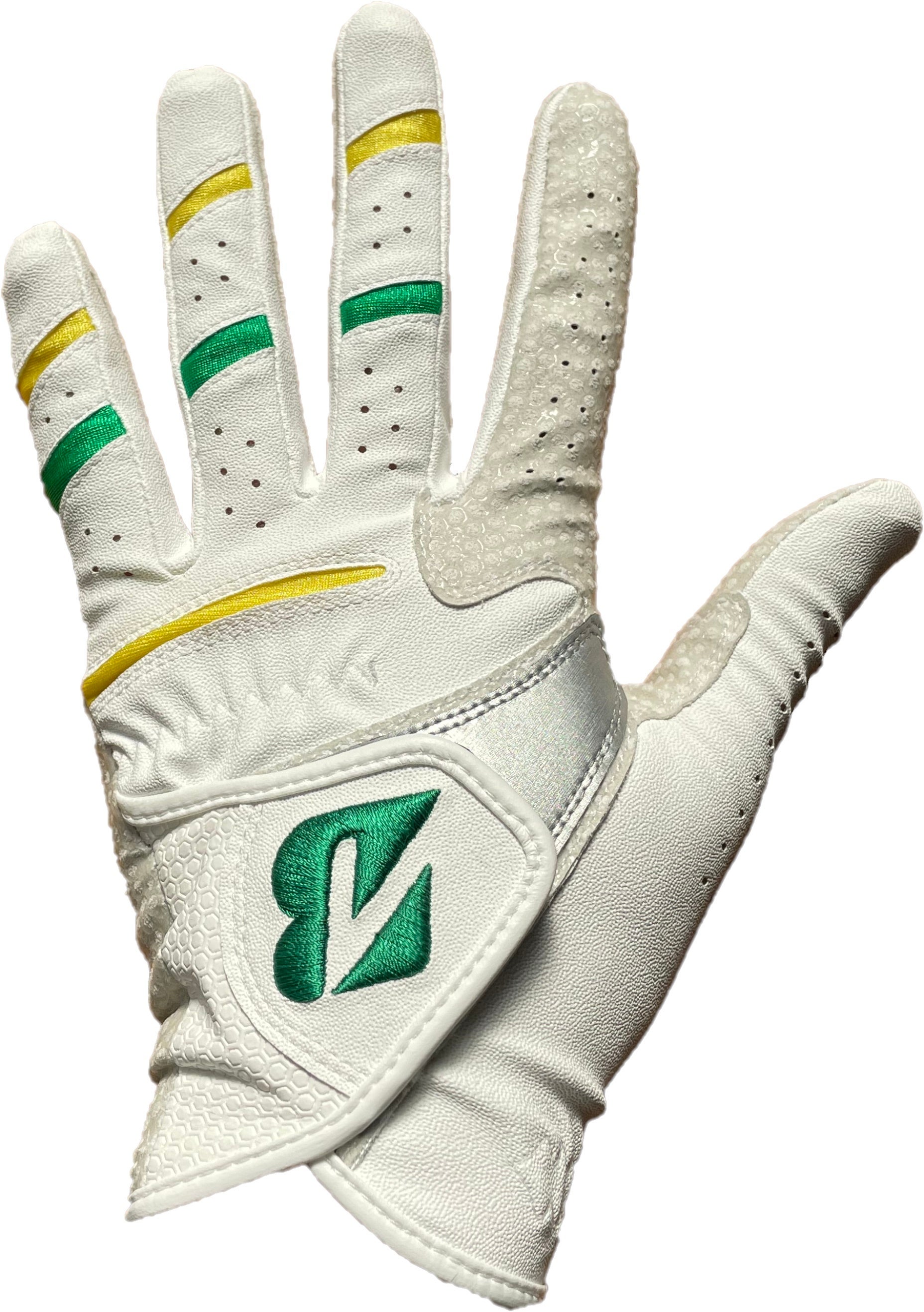 ゴルフグローブからは、シリコーンプリントで高いグリップ力を追求した、ゴルフグローブ『ULTRA GRIP(GLG25)』の限定カラー(GLG25C)2色(TR:トリコロール、YG:黄/緑)を8月26日に発売します。価格はオープンです。同商品は、手のひら側全面に加え、手に接するグローブ内側の指の付け根部分にもシリコーンプリントを施し、内と外の両面から滑りを抑えることで強力なグリップ力を追求したモデルです。また、甲側アジャスト部と手のひら側素材を直接縫製する新構造ベルトを採用することでホールド感を追求しています。