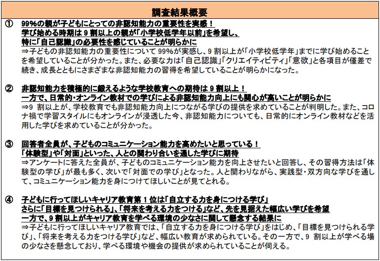 一方で、日常的・オンライン教材での学びによる非認知能力向上にも関心が高いことが明らかに