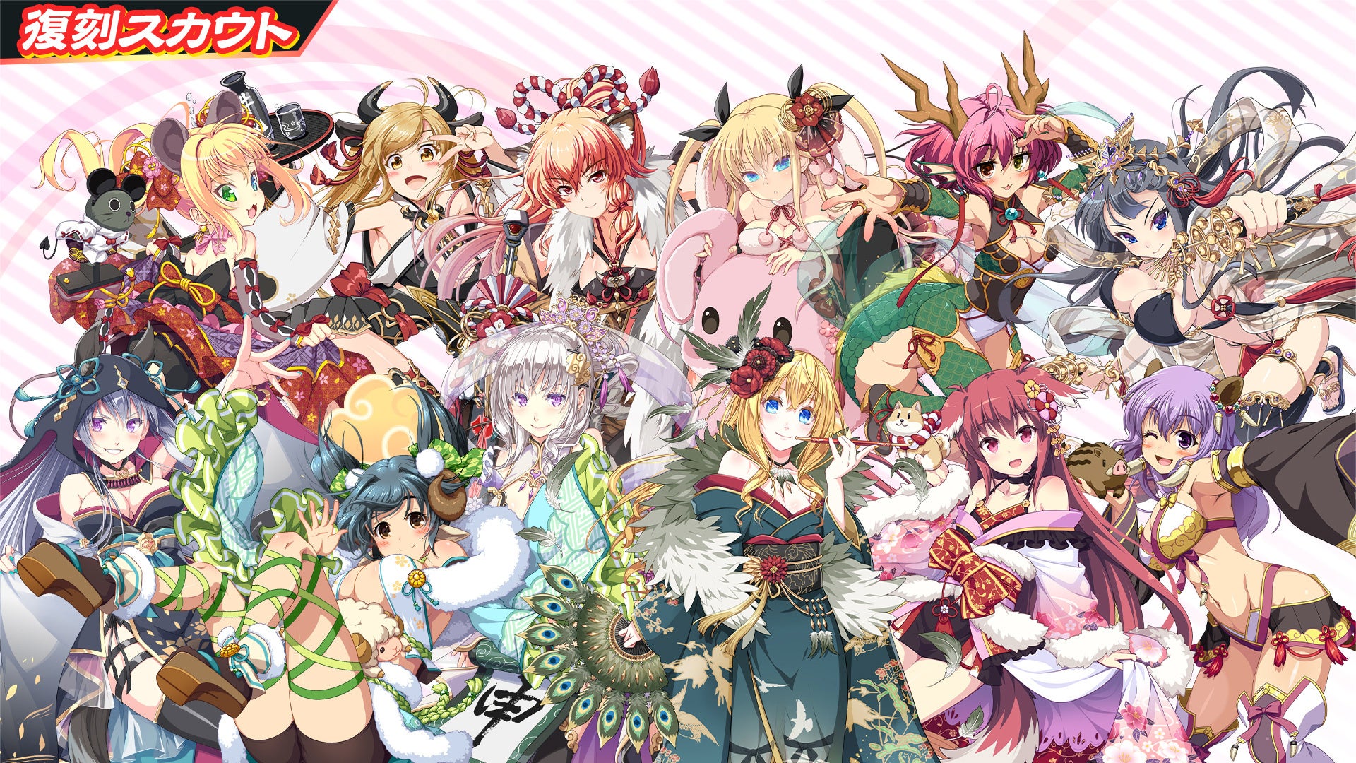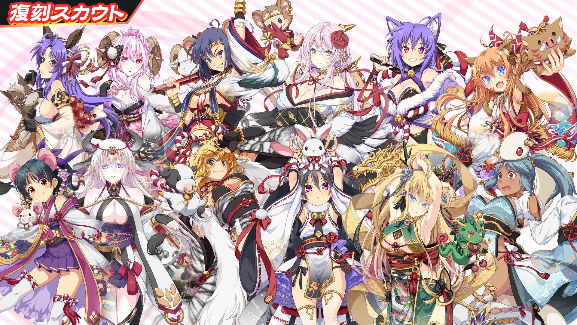 干支チケット60枚で、2018年版と2019年版の24体の中から任意の干支衣装選手1体と交換できます。