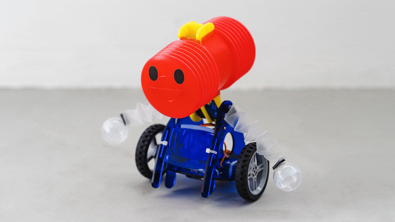 ロボットの頭はピコピコハンマーをベースとして作られており、自分のプログラムによって自由にロボットの首を上下に振ることができます。