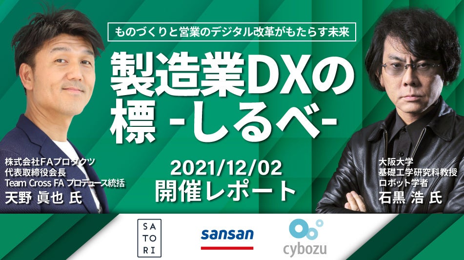 マーケティングオートメーション(以下、MA)ツール「SATORI」を開発・提供するSATORI株式会社(所在地:東京都渋谷区、代表取締役:植山 浩介)は、2021年12月2日にオンラインイベント「製造業DXの標-しるべ-〜ものづくりと営業のデジタル改革がもたらす未来〜」第一線で活躍されるプロフェッショナル2名の基調講演とDX推進事業を運営するSaaS企業3社の合同セッションを開催しました。