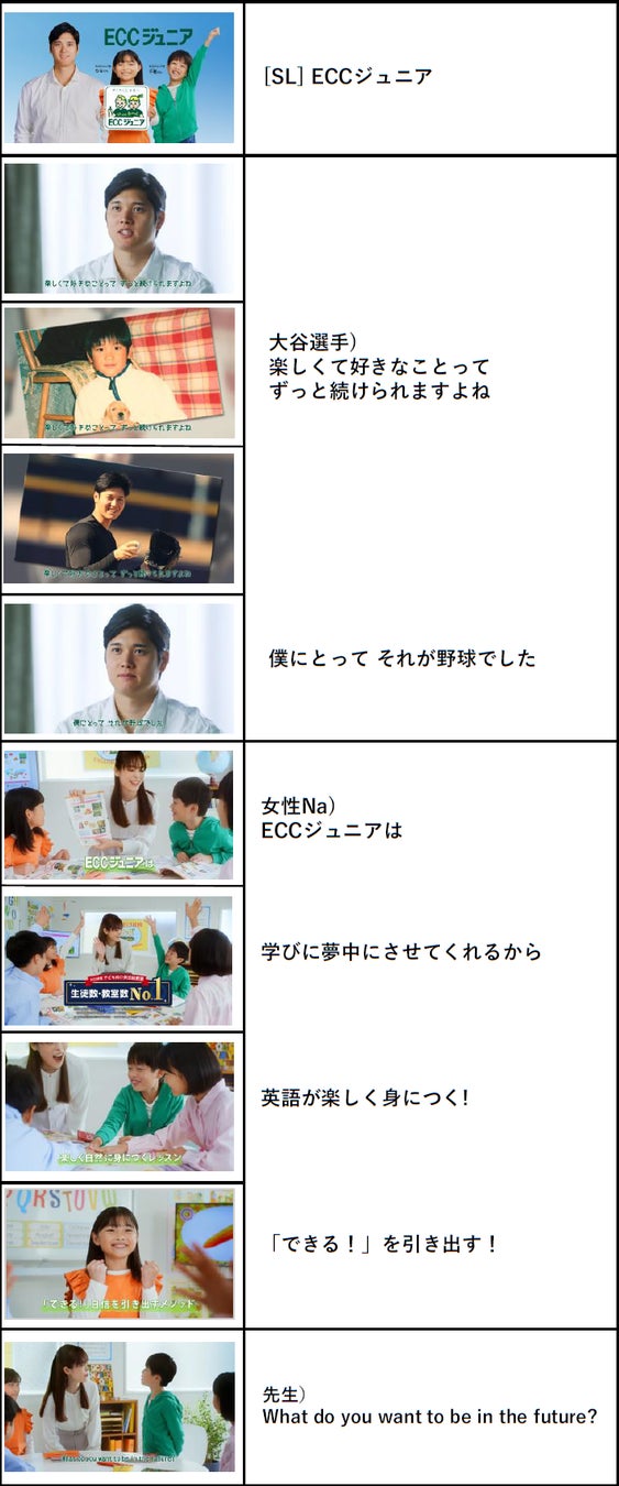 ■ 新TVCM 『ECCジュニア生徒募集 大谷翔平選手/英語で、翔け。篇』(30秒) ストーリーボード