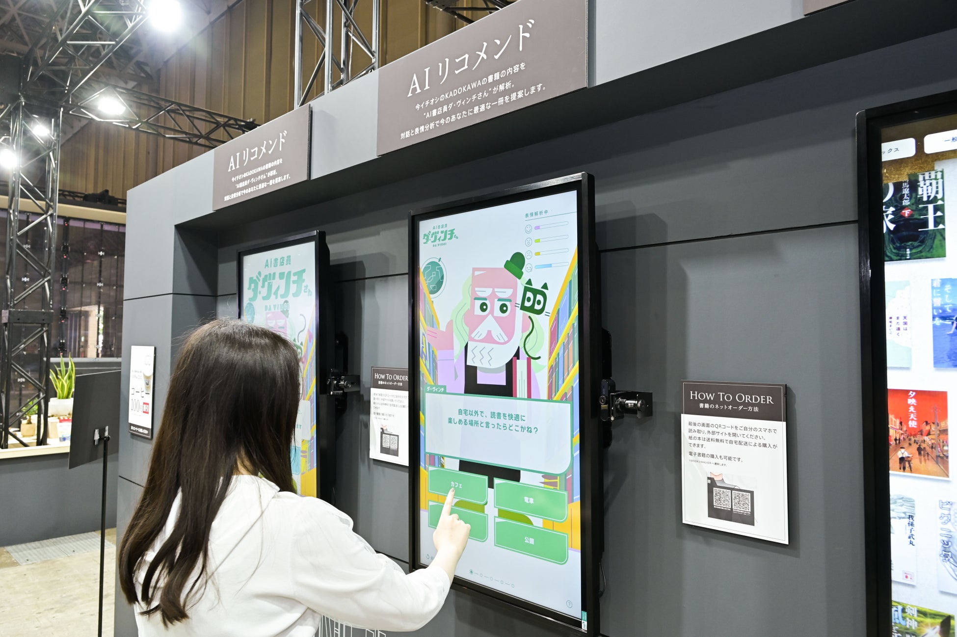書籍をリコメンドする体験型コンテンツ。モニターの「AI書店員ダ・ヴィンチさん」の質問に答えながら対話を進めていくと、お客さまに最適な一冊を診断してくれます。表情分析も導入しており、「今の気分にぴったりの本」や「普段選ばないような本」など、潜在的に欲している書籍を見つけることができます。