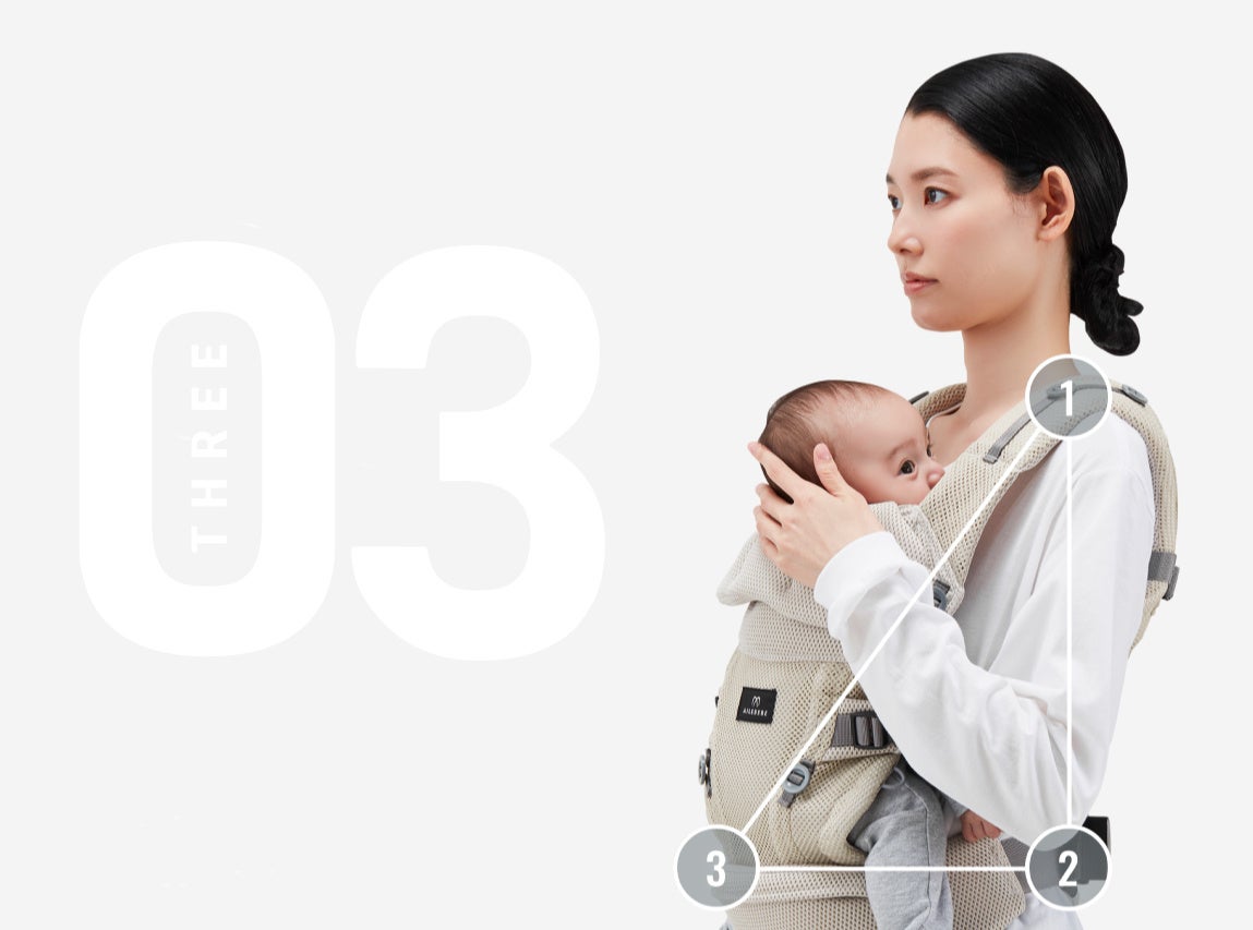 肩パッドの形状など、日本人の体型にあった抱っこひも「THREE(スリー)」が7月下旬に発売|エールベベ