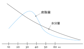 年齢を重ねた肌に起こる変化のひとつに「皮脂の変化」があります。天然のクリームとも言われ、肌の保湿やバリア機能を担っている皮脂は30代をピークに分泌量が減少。また、量だけでなく“質”も変わっていきます。それまでの皮脂は不飽和脂肪酸が多くサラサラしているのに対し、大人肌の皮脂は粘度の高い飽和脂肪酸が多く含まれるベトベトとした質感に変化します。