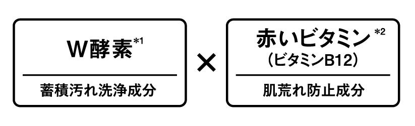 *1 洗浄補助成分 パパイン、プロテアーゼ、リパーゼ *2 整肌成分 シアノコバラミン