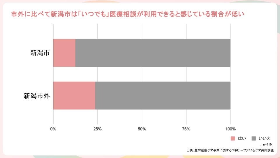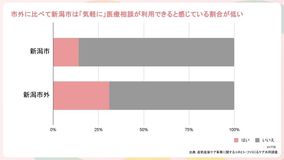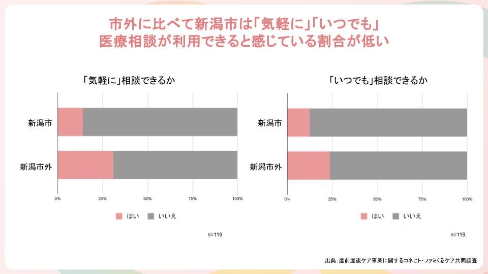 一方で、市外と比較すると新潟市は、専門家への相談が「気軽に」「いつでも」相談できると感じている割合が低いという課題が浮き彫りになりました。