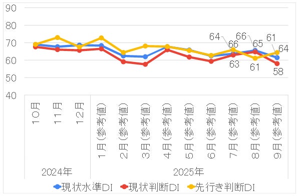 ・現状水準DI※1 は、前四半期差で-1ポイントの64と横ばいであった。