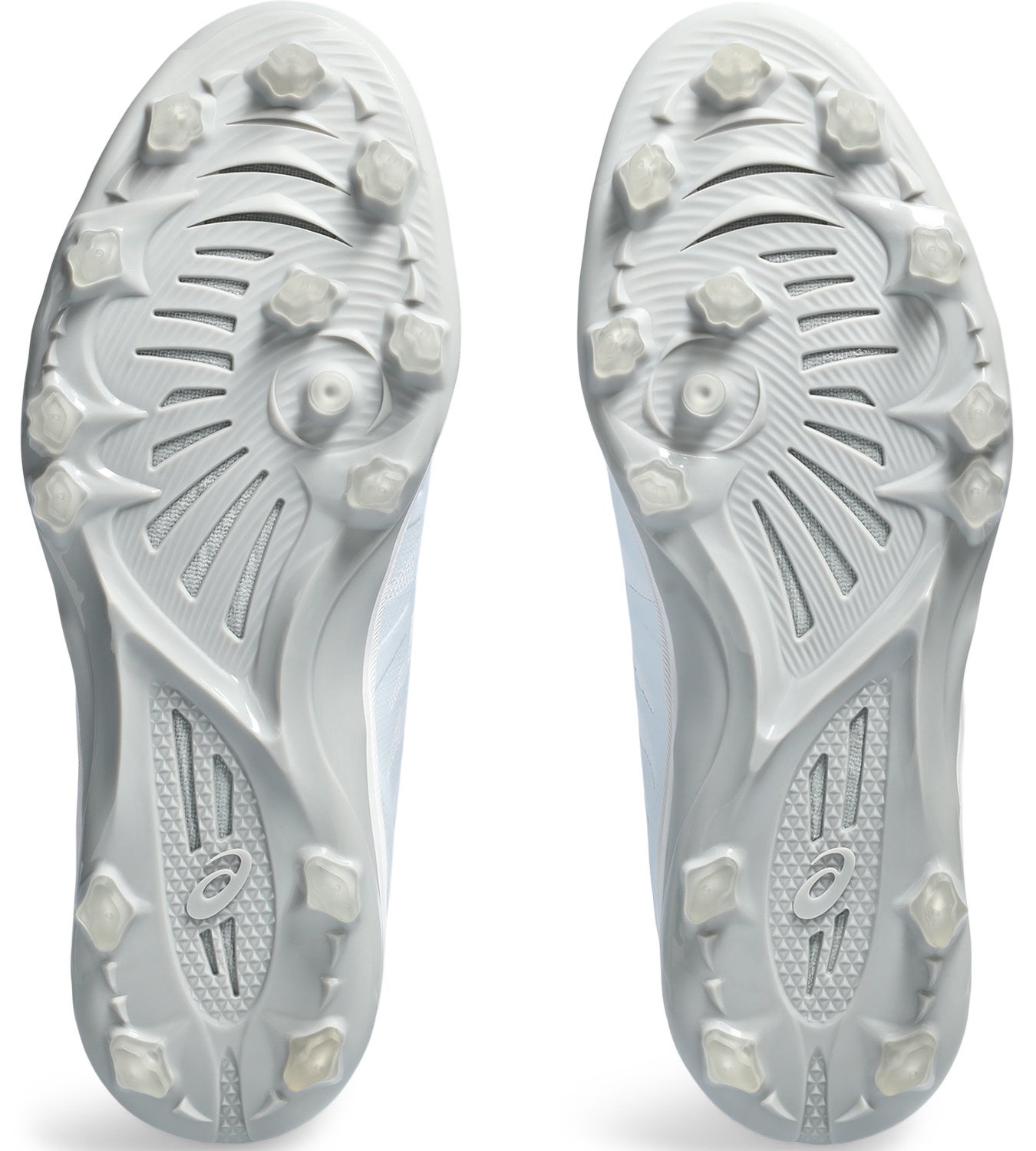 靴底には、足への負担が少なく、地面に刺さりやすい小型の新スタッドを適所に配置しています。新スタッドは、地面との接地面積を小さくし、形状や長さを工夫したほか、前部と後部で大きさを変えることで、しっかり接地しながら足を素早く踏み出せる構造にしています。