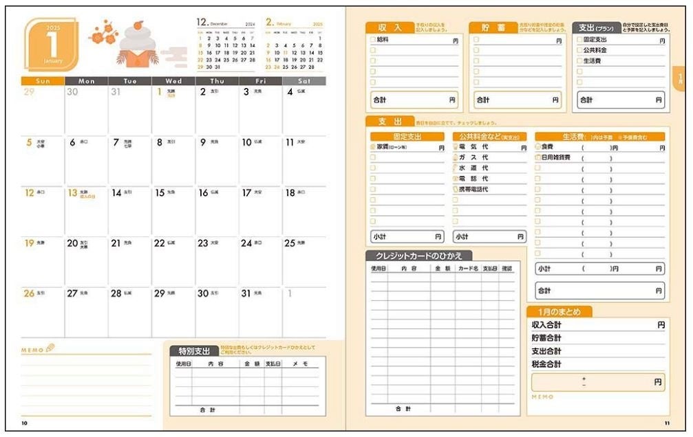 『節約家計ノート』2025年版のコラムでは、「物価上昇時にやりくりするコツ」「今日から実践できる値上げ対策」「ためたポイントを上手に使う方法」など、知っていればお得な情報や気になる話題が満載。