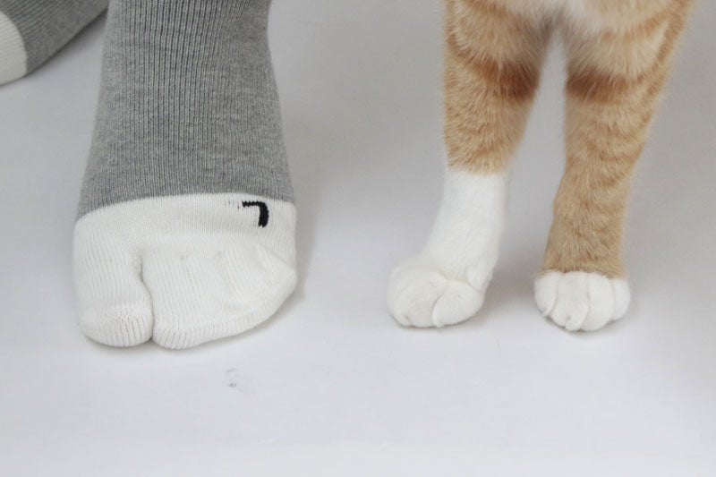 自分の足も猫足になれるソックスが…さらに猫らしくパワーアップ?!足袋バージョン新発売ニャ!「能ある猫は、爪隠す」猫が爪を隠している手足をイメージして編み上げた猫助けできる靴下が登場!