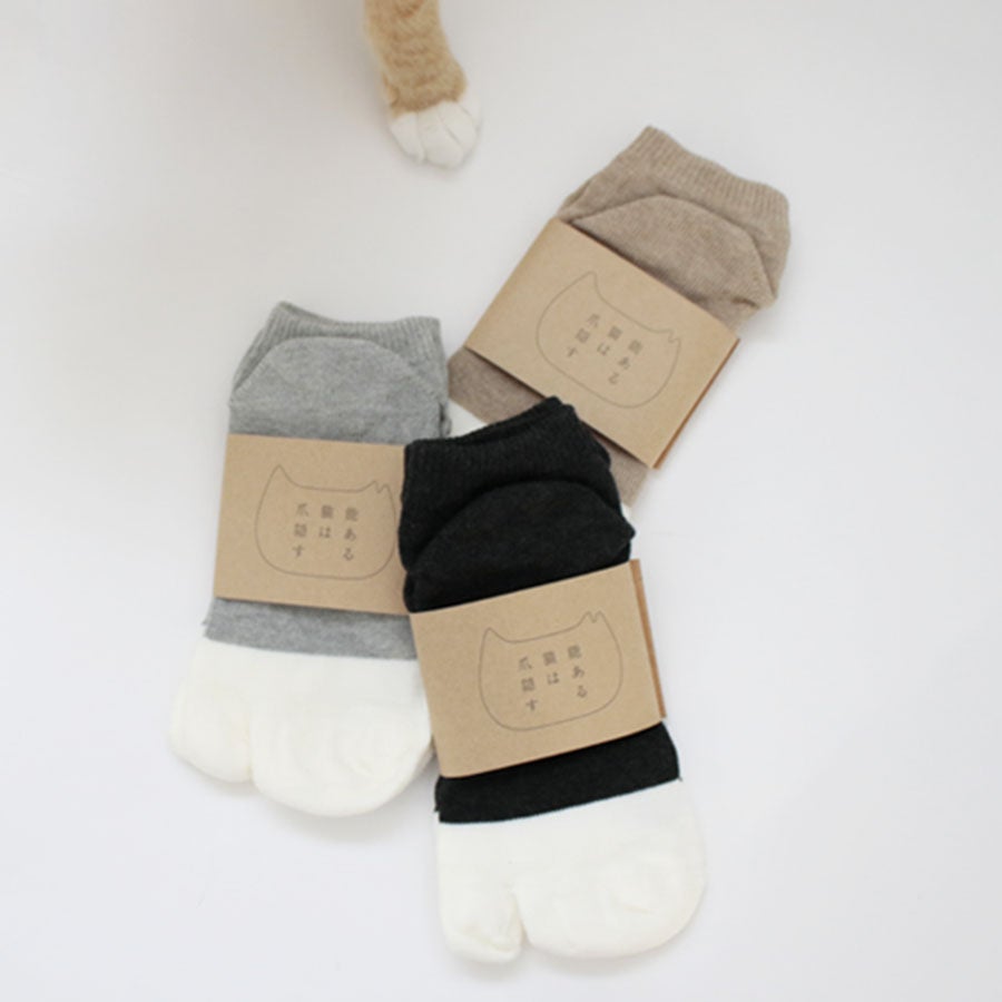 猫が爪を隠している。そんな猫の手足をイメージした"能ある猫は爪を隠す 見えない5本指ソックス"に「足袋」ソックスが登場。猫好きにはたまらないデザインは必見!