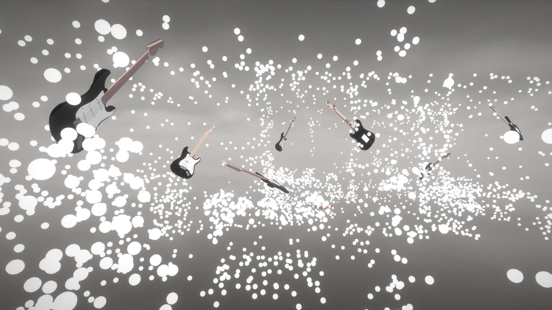 カンディンスキーは、音楽と絵画を抽象的に結びつけました。彼の作品は、音楽を演奏するときの没入感をどのように視覚化するか、私にインスピレーションを与えてくれました。私はギターの弦を入力に変換し、スキャンした室内を点群に変換しました。また、カンディンスキーの作品の一つであるComposition VIIIからパターンを収集し、私の演奏とミックスしています。