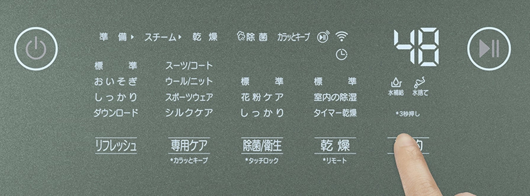 ダウンロードコースとして公開していた「花粉ケアコース」と「シルクケアコース」を標準搭載。ディスプレイパネルにボタンが追加され、より簡単にコースを選べるようになりました。