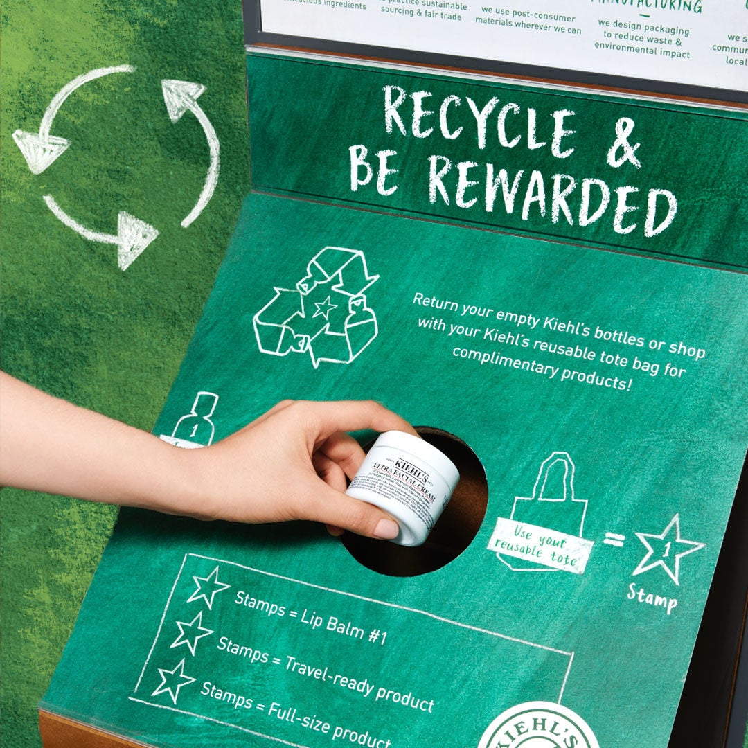 キールズ製品は、詰め替え用のレフィル製品やリサイクルパッケージを使用しています。この活動を通じ、水の使用量を21%削減*2 廃棄物を36%削減*2 してきました。また、全国のキールズストアではリサイクルBOXを設置しており、キールズ製品の空き容器を回収し、リサイクルしています。この期間中、「キールズ クリーム UFC」をご購入の方に回収した空き容器で作られたスパチュラをプレゼントするほか、レフィル製品の購入に伴うレフィルポイントが100ポイント(通常50ポイント)、そして容器回収に伴うリサイクルポイント付与が通常より2倍になるキャンペーンを実施いたします。