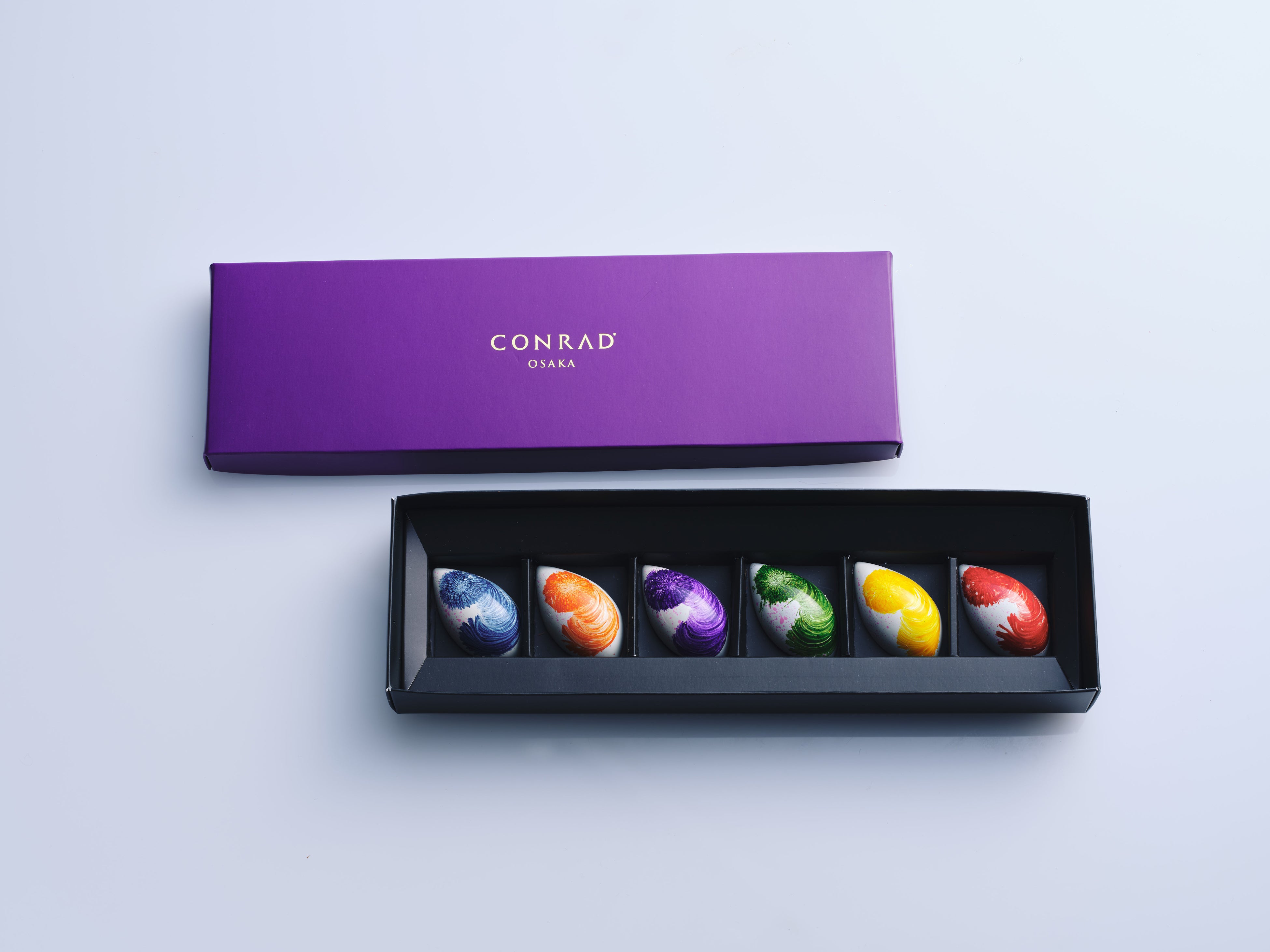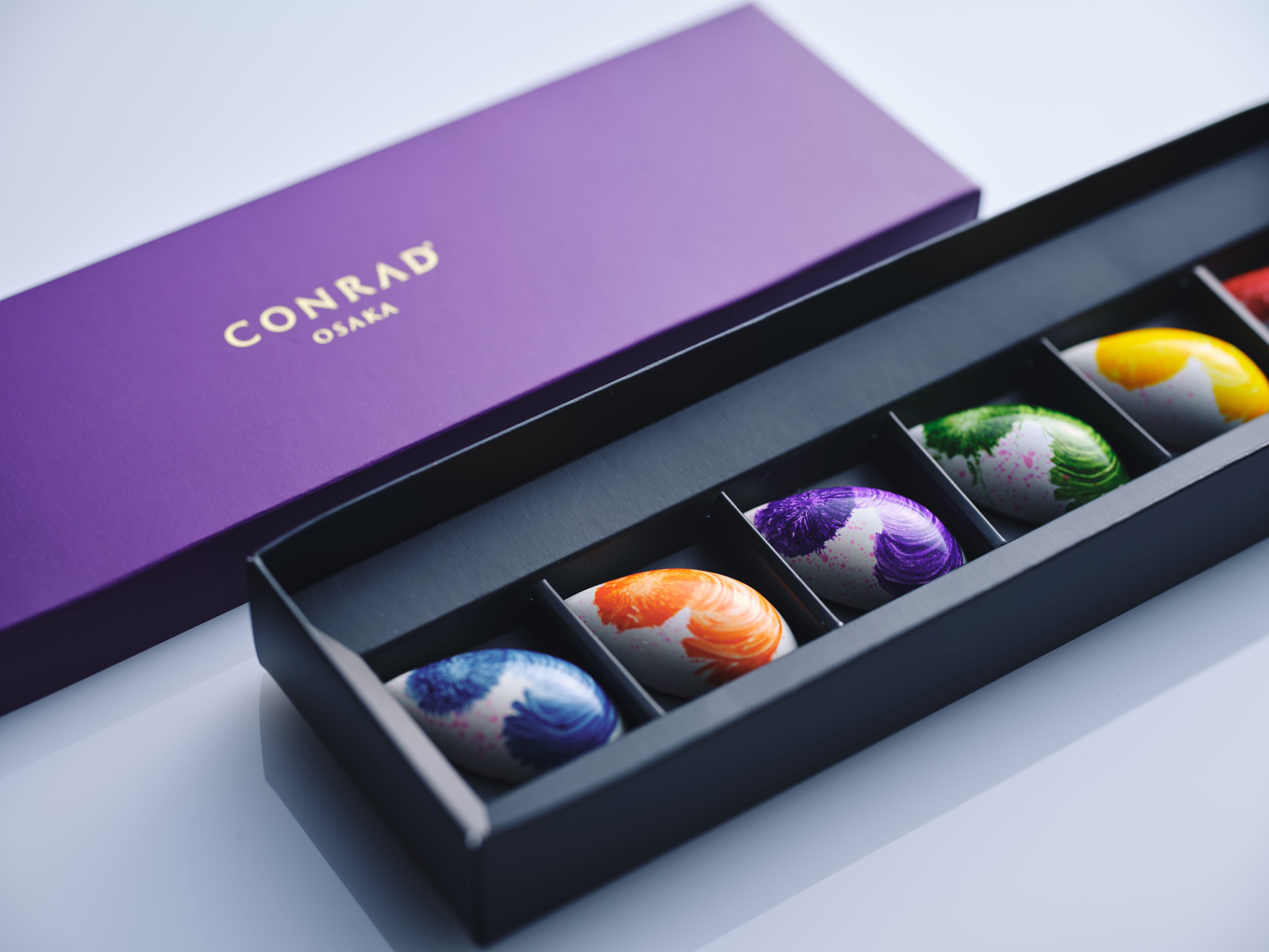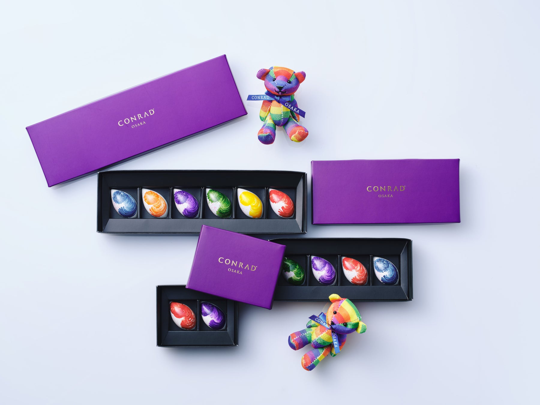 チョコレートボックスは2個、4個、6個の3種類でご用意。大切な人やご友人へのプレゼントや、ご自身へのご褒美ギフトとしてもおすすめです。また、カラフルな色使いがチョコレートとマッチする限定のレインボーベアとのセットや、「40スカイバー&ラウンジ」では、バレンタインカクテルとチョコレートをセットにしたペアリングのセットも、期間限定でご用意しました。ペストリーシェフ児島が、「チョコレートに花言葉のメッセージを載せて、想いが届きますように」と想いを込めて創作したコンラッド大阪の2025年バレンタインチョコレートをお楽しみください。