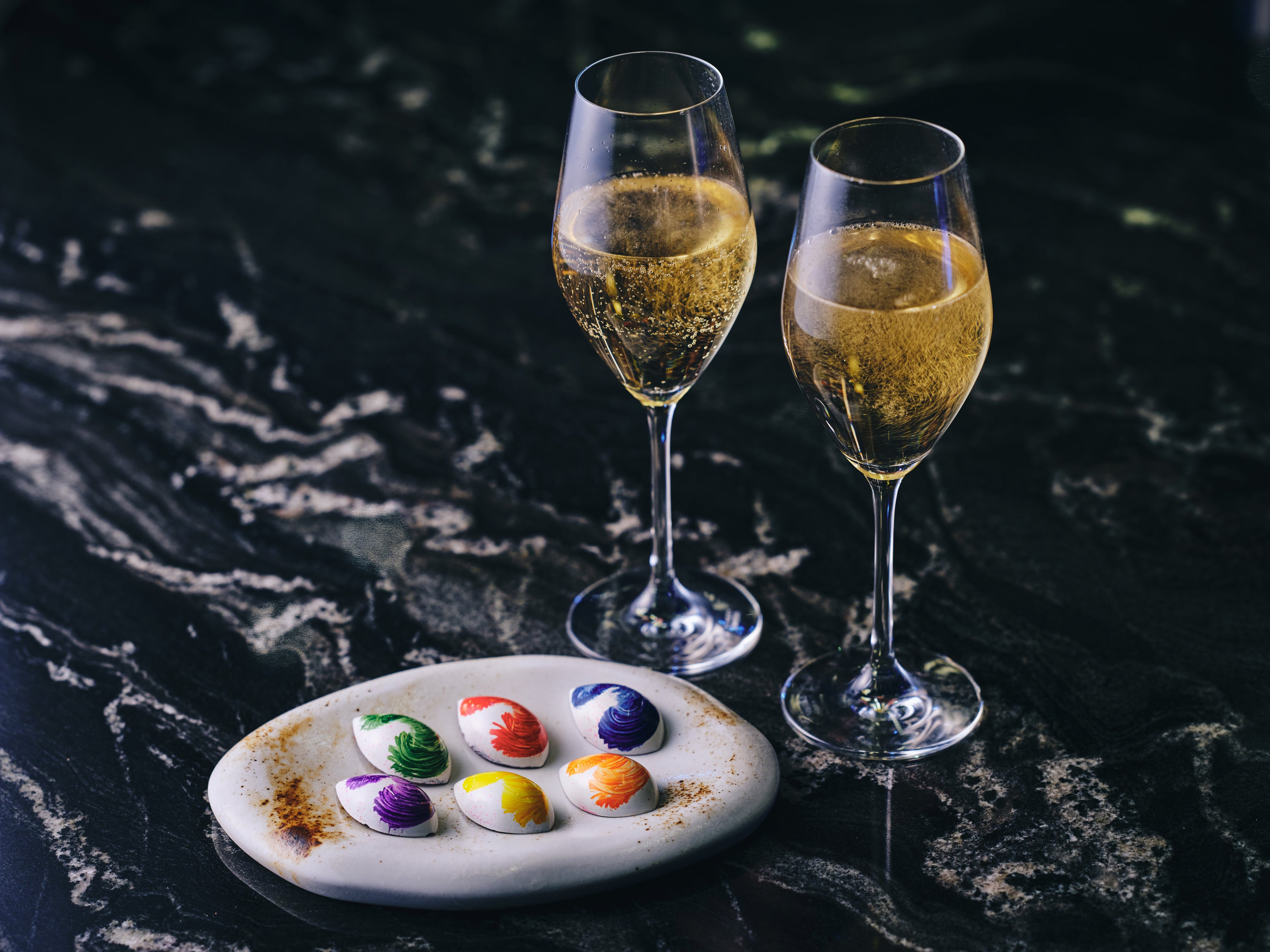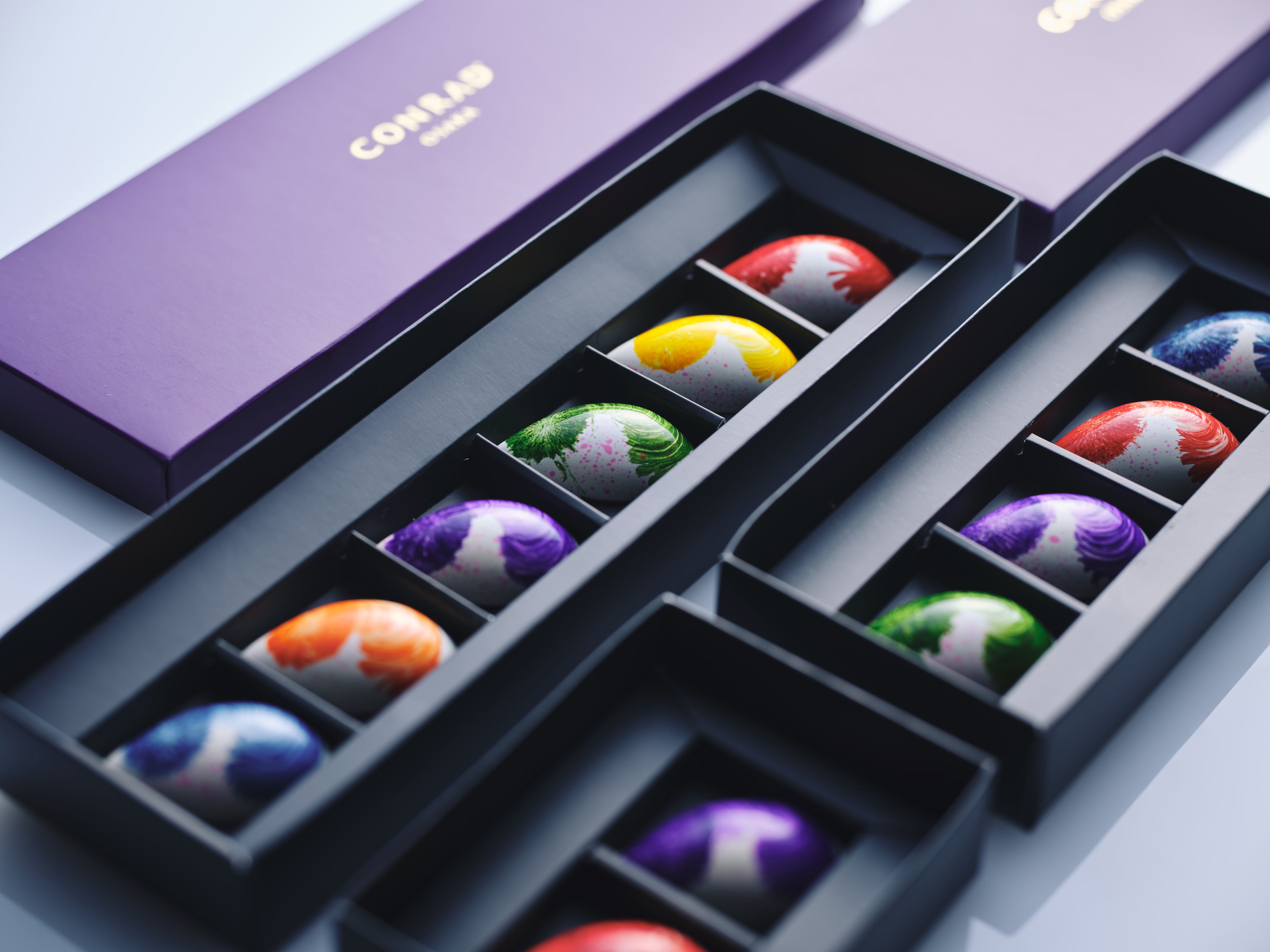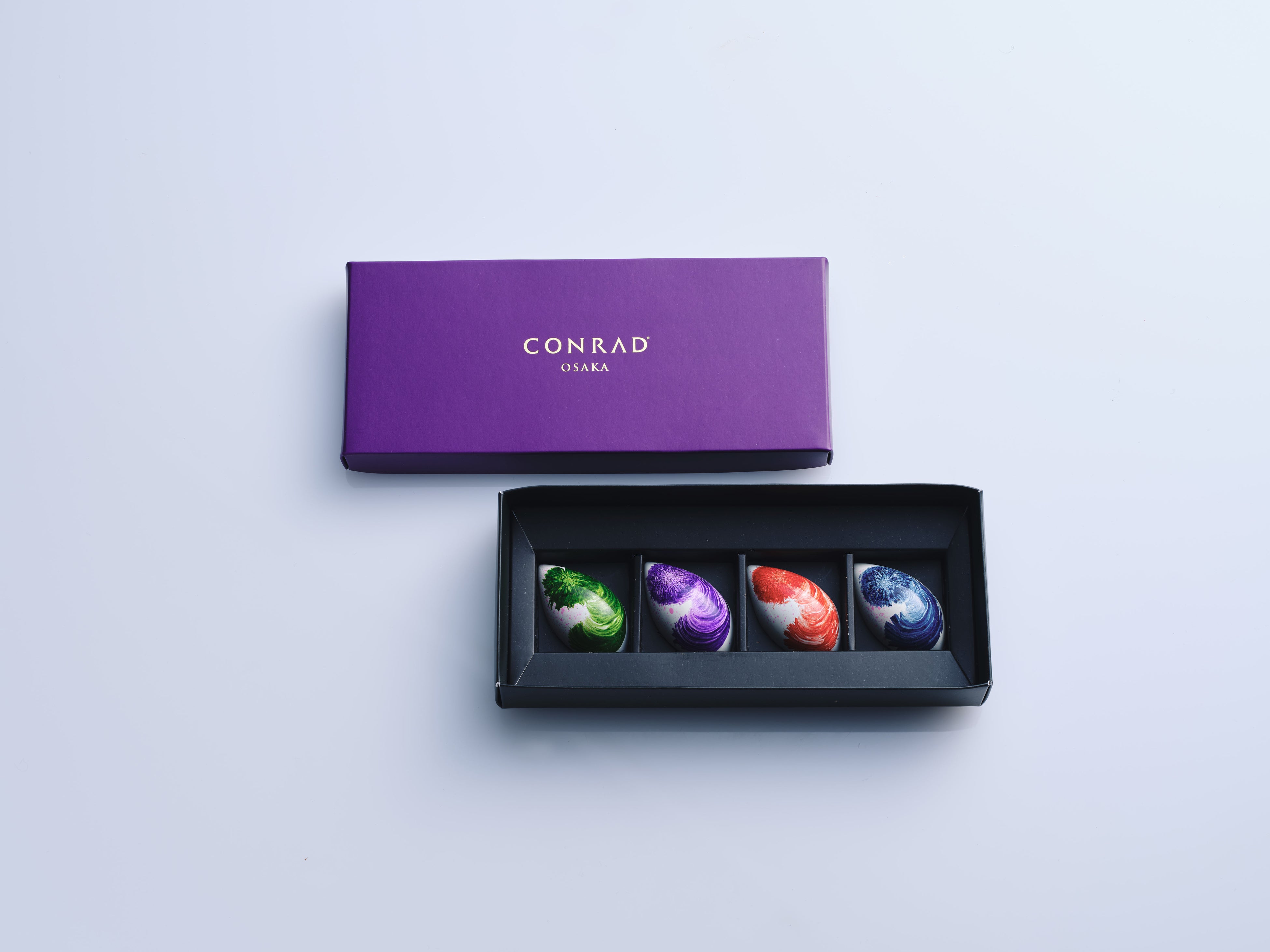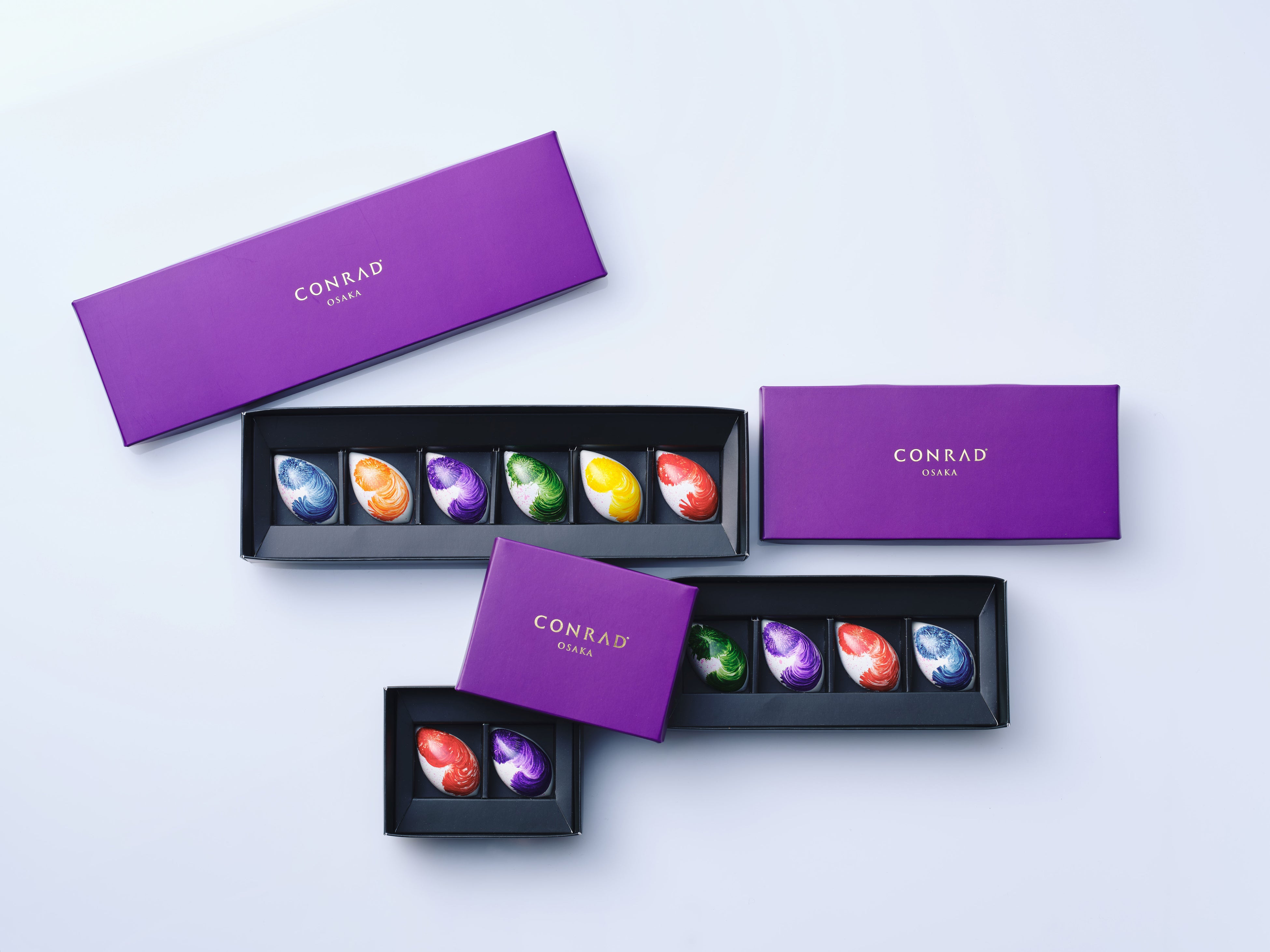 チョコレートボックスは2個、4個、6個の3種類でご用意。大切な人やご友人へのプレゼントや、ご自身へのご褒美ギフトとしてもおすすめです。また、カラフルな色使いがチョコレートとマッチする限定のレインボーベアとのセットや、「40スカイバー&ラウンジ」では、バレンタインカクテルとチョコレートをセットにしたペアリングのセットも、期間限定でご用意しました。ペストリーシェフ児島が、「チョコレートに花言葉のメッセージを載せて、想いが届きますように」と想いを込めて創作したコンラッド大阪の2025年バレンタインチョコレートをお楽しみください。