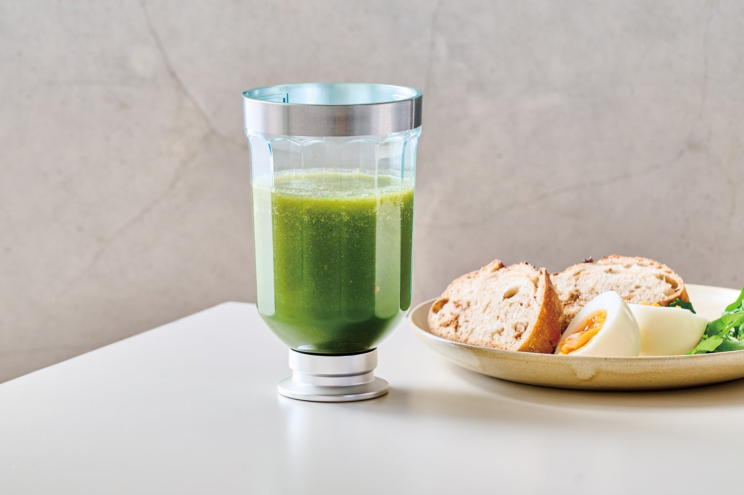 プロテインなどもサッと溶けて口当たりもなめらか。家庭用製氷器の氷(2〜3粒)や半解凍した冷凍フルーツも液体と一緒に撹拌できます。