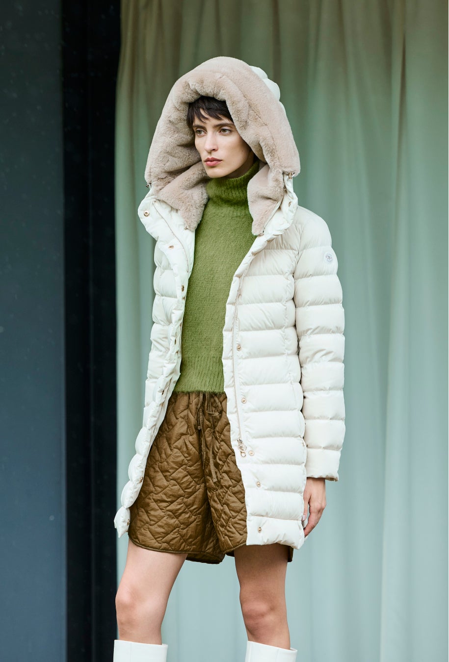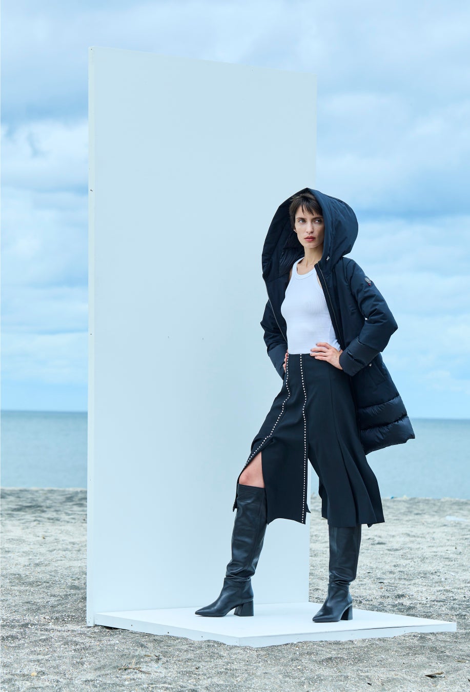 ファブリックには耐水性や防水性のナイロンを、中綿には新素材や羽毛、高級ダウンを用意し、