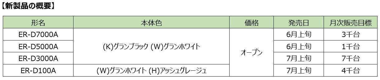 注3:2023年6月発売 ER-YD7000