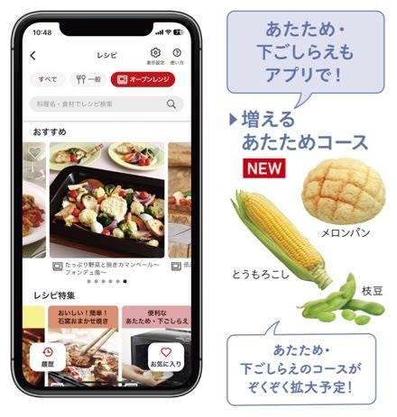 さらに、当社提供のスマートフォン専用アプリ「IoLIFE」には、新たにあたためコースを新搭載。レンジ加熱ではやわらかくなったり、オーブントースターを使うと表面が焦げているのに中があたたまっていないなど、再加熱が難しいハンバーガーや総菜パンなどの食品も簡単においしくあたためます。なお、今後も順次食品の種類を拡大していきます。