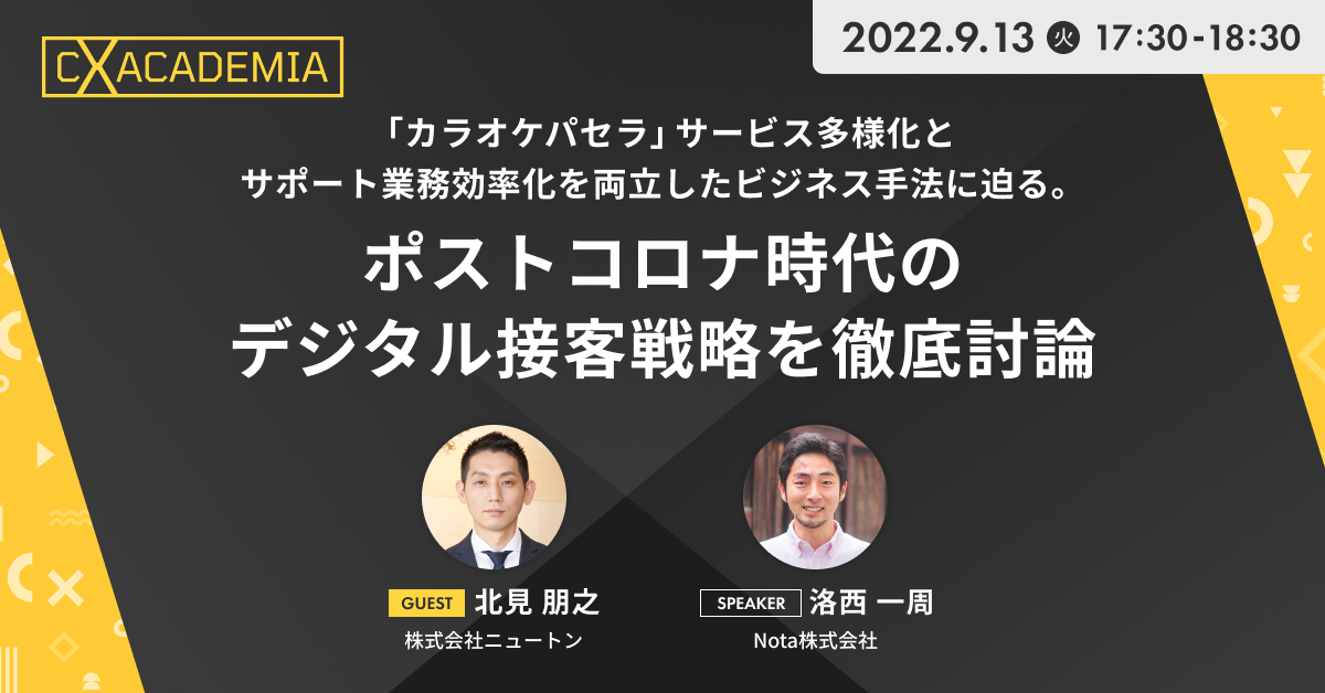 革新的な疑問解決エンジン「Helpfeel(ヘルプフィール)」( https://helpfeel.com/ )を提供しているNota株式会社(以下、Nota)は、先進企業が実践しているCX(カスタマーエクスペリエンス)改善のベストプラクティスを習得するオンラインイベント「CX Academia」を開催します。