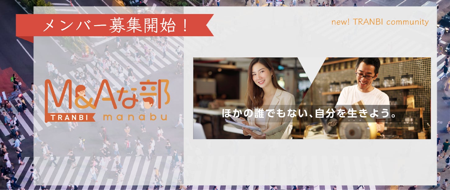 国内最大級のM&Aプラットフォーム「TRANBI」を運営する株式会社トランビ(本社:東京都港区、以下「トランビ」)は、個人M&A挑戦者向けコミュニティ「M&Aな部(まなぶ)」を開設し、2022年2月より参加メンバーの募集を開始しました。すでに60名の方に参加いただいています。