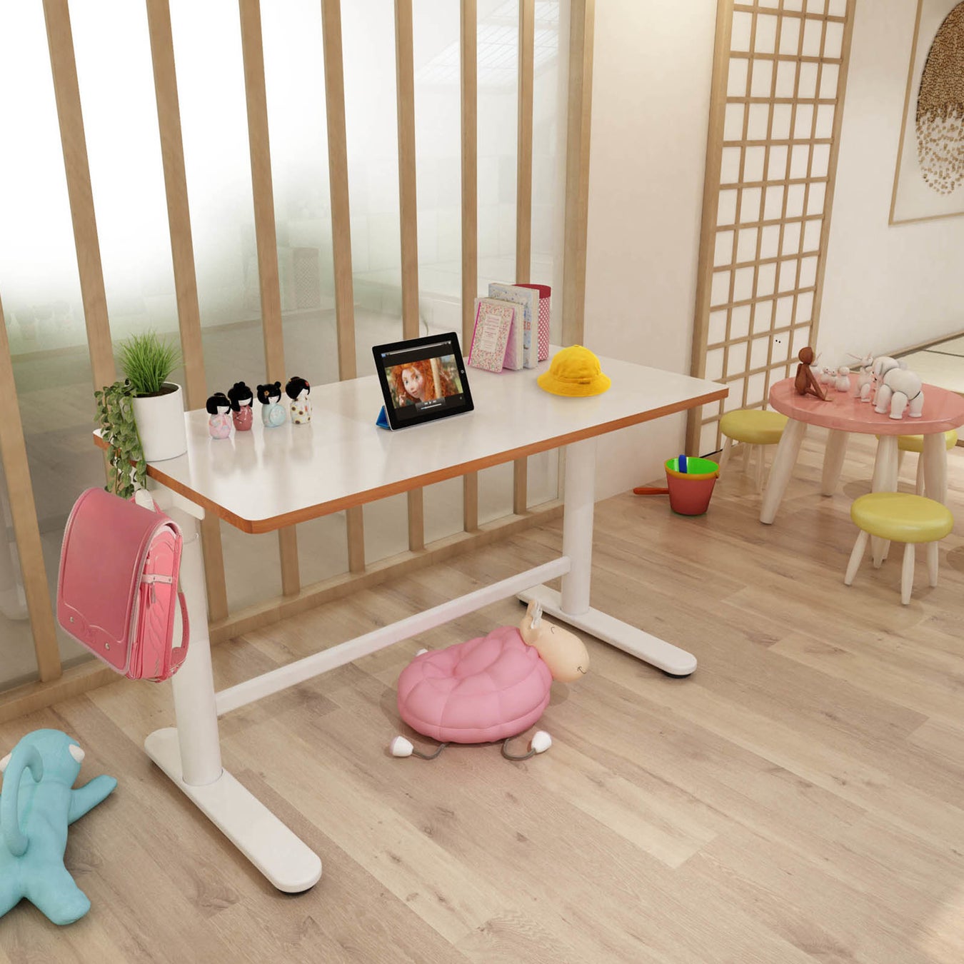 - 自由に電動昇降で子供が成長しても使い続けられる!