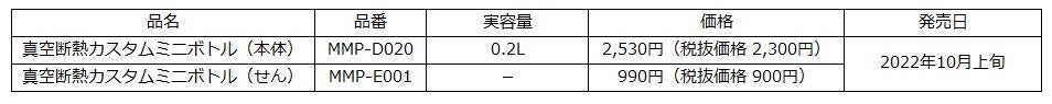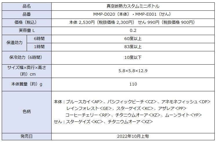 真空断熱カスタムボトル 新シリーズ MMP-D/E型 2022年10月上旬発売