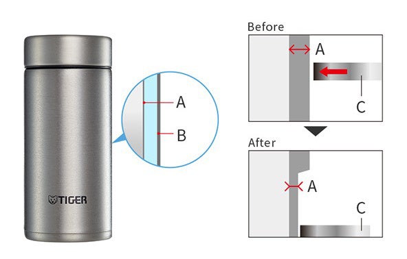 A:内筒の厚さ 約0.1mm B:外筒の厚さ 約0.3mm