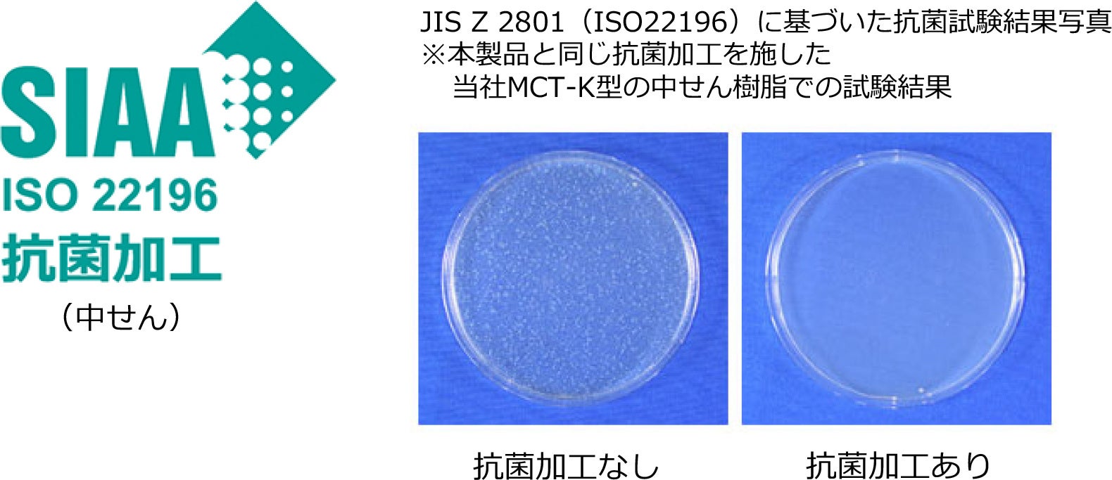 (※1)抗菌加工されていない製品の表面と比較し、細菌の増殖割合が百分の一以下であり、耐久性試験後も抗菌効果が確認されること。