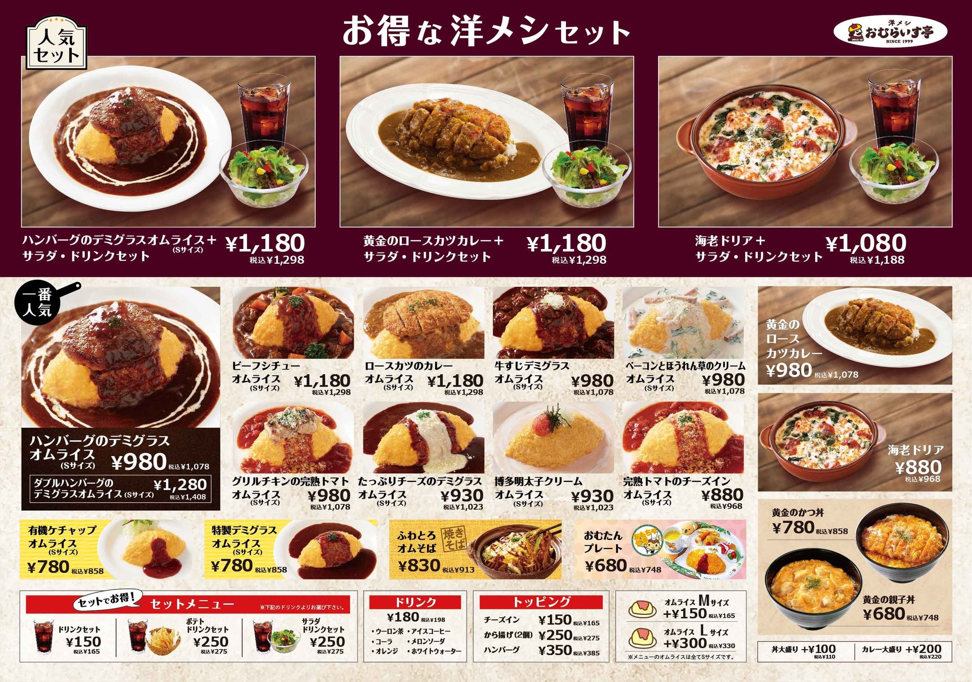 ブランド名に「洋メシ」の称号も付け加えました。これは日本生まれの“洋食”であるオムライス、カツカレーなどを“洋メシ”と表現することで県下初出店の和モダンな洋食店「おむらいす亭」のコンセプトをより認知していただくことを意図したものでございます。そしてメニューにもお得な「洋メシセット」3種類ご用意させていただきました。