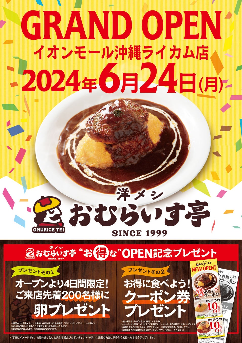 “ふわとろオムライス”「おむらいす亭」沖縄イオンモール沖縄ライカム店 6月24日(月)グランド・オープンいたします
