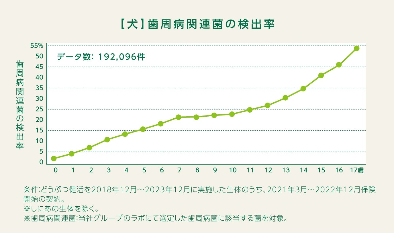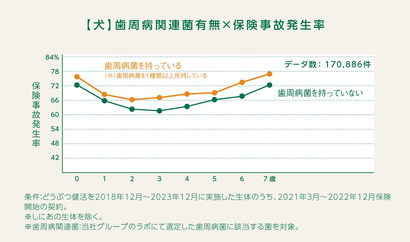 ※1 歯周病関連菌:アニコム損保の保険金請求データとどうぶつ健活(腸内フローラ測定検査)データを用いて当社グループのラボが選定した、歯周病罹患と関係があると考えられる細菌20種。
