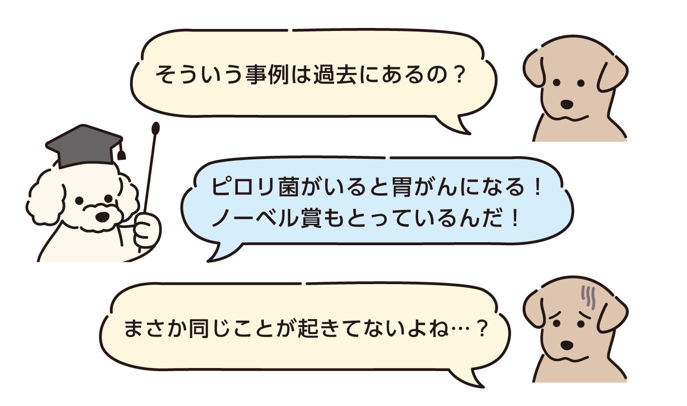 ※3 従来ピロリ菌が胃に存在する可能性は指摘されていたものの、強酸である胃酸によって定着できないと考えられていました。そこで教授らはピロリ菌を経口摂取して自らの体で胃炎が発症することを再現するとともに、潰瘍部分の生検を通じて実際にピロリ菌を検出することに成功しました。さらに胃炎治癒後に再度患部であった箇所を生検したところ、ピロリ菌が検出されないことを確認しました。これはコッホの原則(ある病気には一定の微生物が見出される/その微生物を分離できる/分離した微生物を感受性のある動物に感染させて同じ病気を起こせる/その病巣部から同じ微生物が分離される)に即した事象であるといえます。