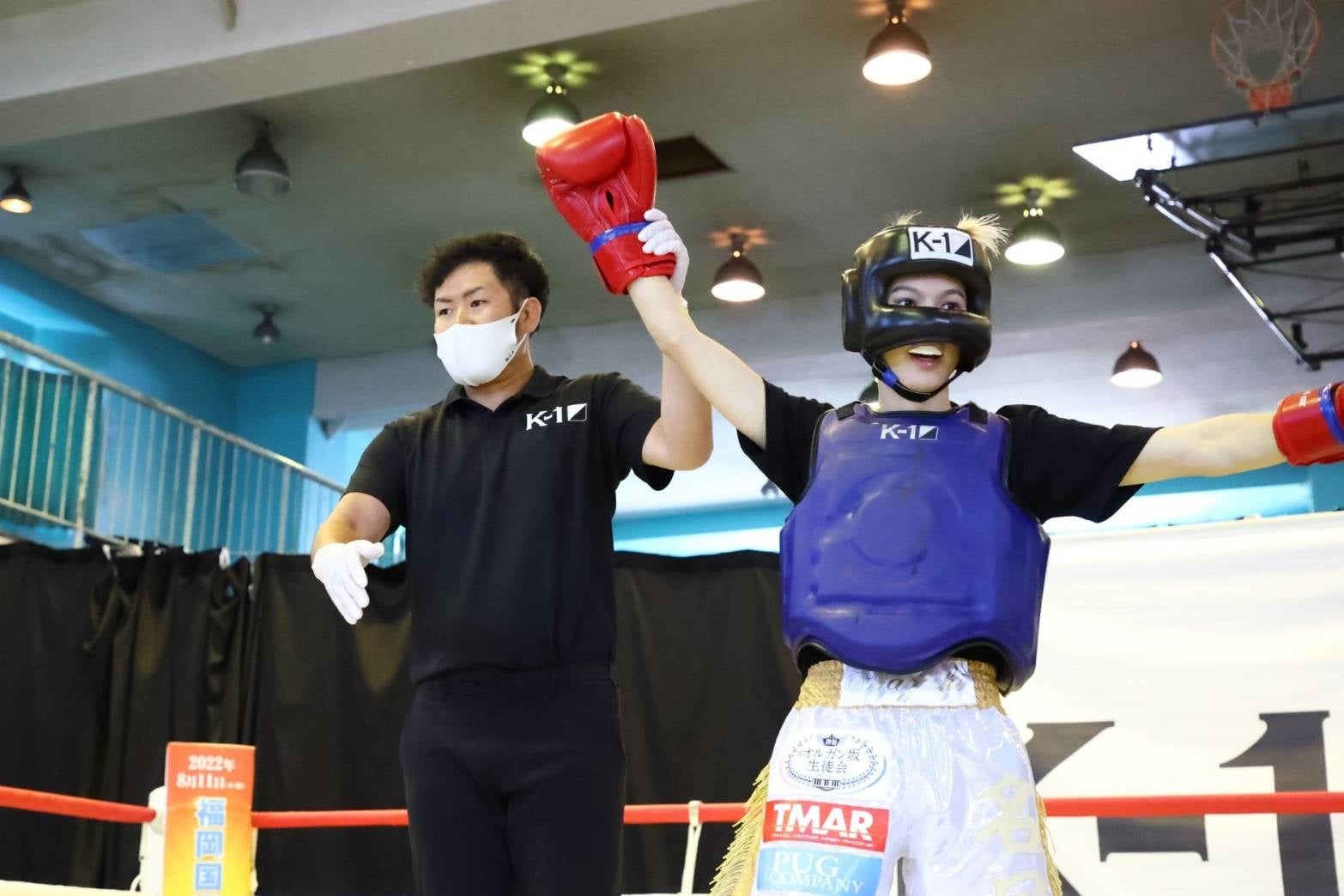 「初めてK-1アマチュアの試合に出て、最初は意識が飛んじゃって、あんまり覚えてないんですけど…勝つことができました。今まで練習してきた分、頑張ってきた分を出すことができて、K-1が好きでよかったなと思いました」