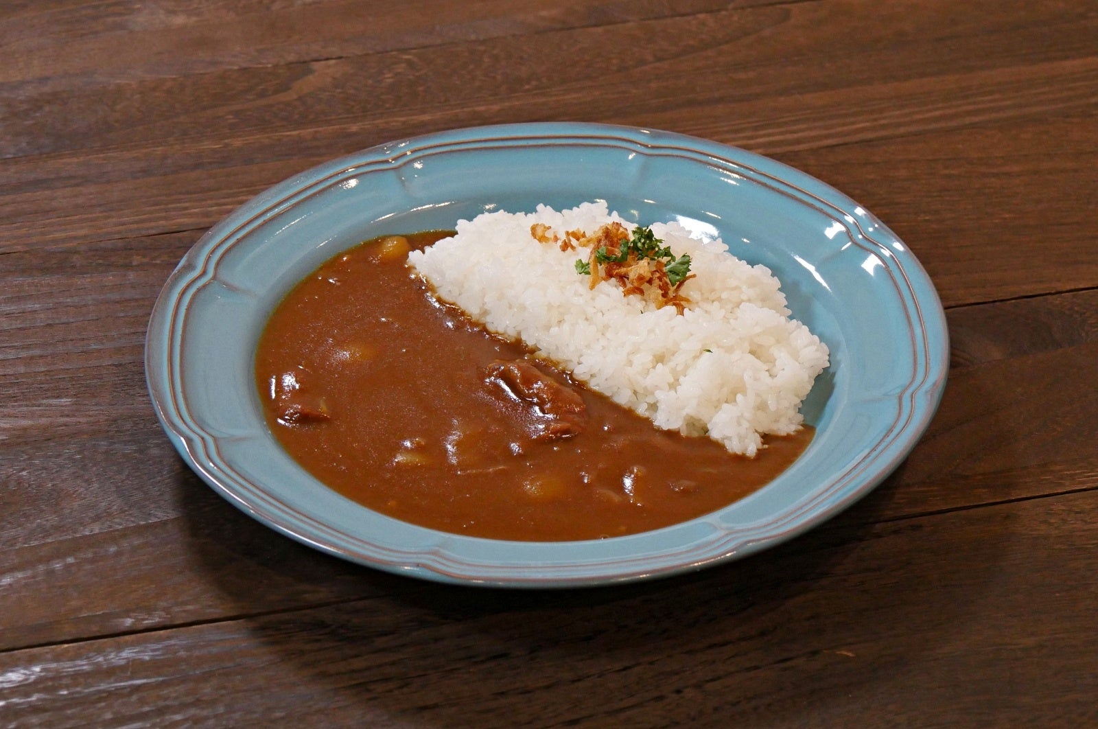 ステーキ店だからこそ扱える上質な牛すじを、玉ねぎとともに丁寧に煮込み、旨みを余すことなくルーに溶け込ませました。