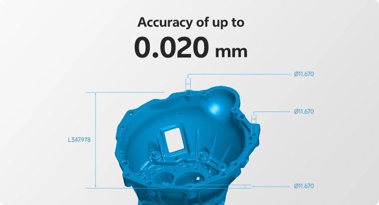 ブルーレーザー技術を採用し、最大精度0.02mm・最大解像度0.01mmを実現。
