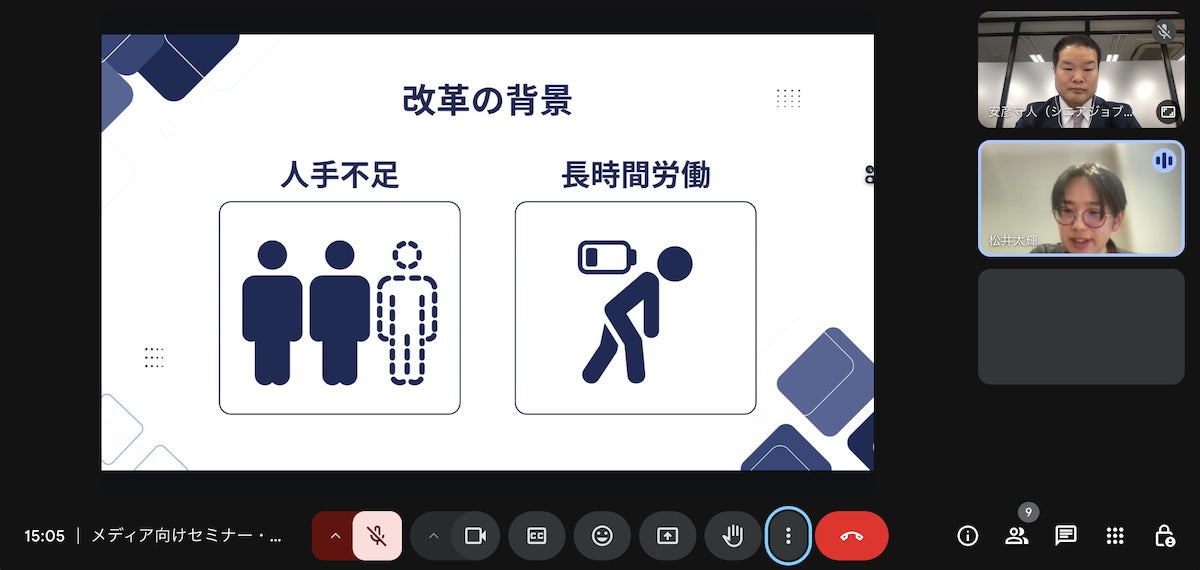シニアに特化した転職支援を提供する株式会社シニアジョブと、外国人向けHR事業などを展開するGuidable株式会社は、異なる属性の求職者への支援を得意とするものの、どちらも建設業界向けの人材供給実績が豊富であり、残業規制強化により採用が活発化した「2024年問題」による需要に対しても多くの人材を供給しました。こうした人手不足の中におけるまとまった数の人材供給の事例とノウハウは、建設業界全体の採用の参考になるとの思いから、今回、メディア向けセミナーを開催しました。