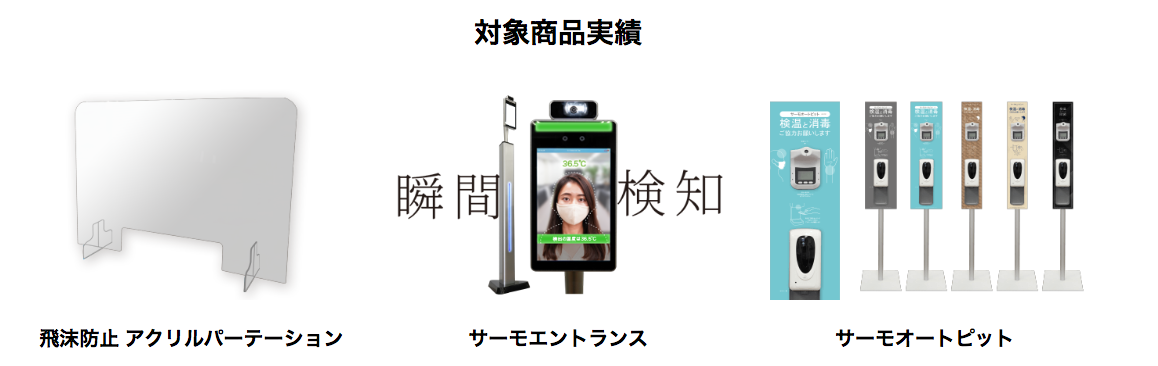 また、「こんな場合はどうか・・・」「この製品はまだ申請できるのか・・・」など、申請が降りるまで、当社製品情報の共有や納期の相談など、助成金・補助金を活用した感染症対策グッズ導入へのサポートも承っています。